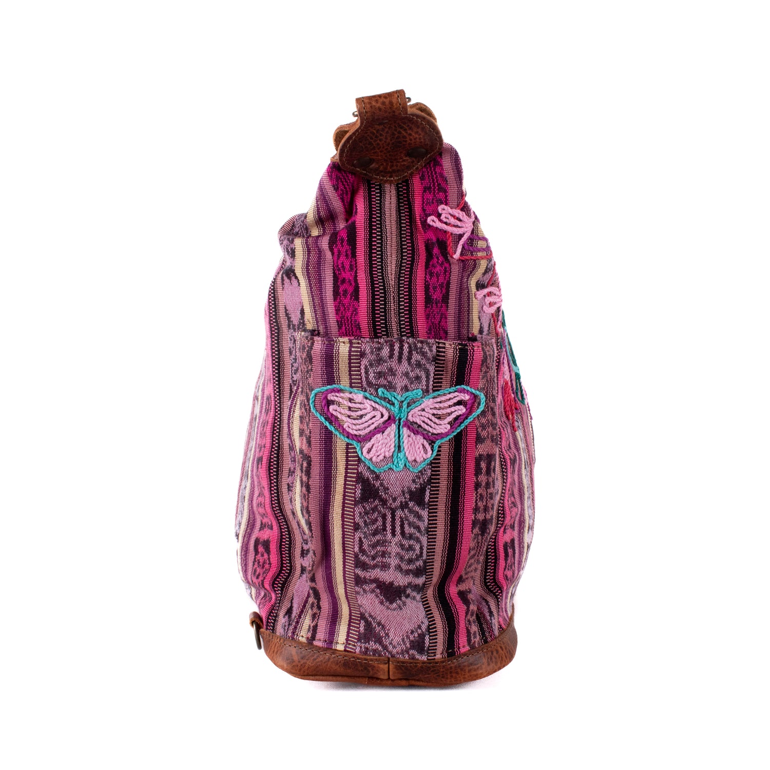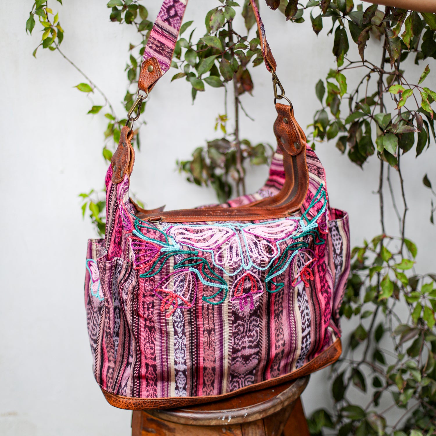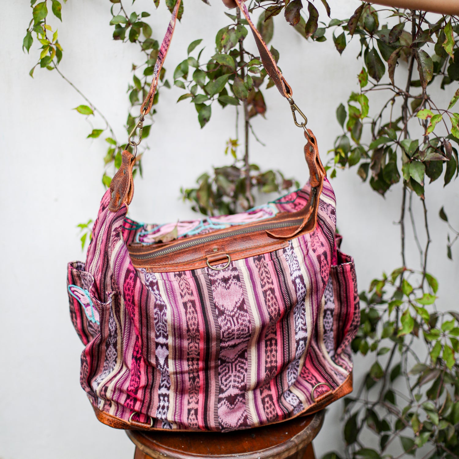 We make every effort to provide our customers with the best-handcrafted and high-quality bags. Please note that all our processes to make the bags are done by hand, from curing, cutting, and treating the leather to using up-cycled huipils. Our bags have natural characteristics and qualities that should not be considered as flaws or as damage because they do not interfere with the functionality of the bag. We up-cycle vintage Maya clothing to make beautiful one-of-a-kind products. Many times you will find snags in the pattern. This is normal. Should your patterned huipil snag you can snip the loose threads with scissors. Do not pull them.