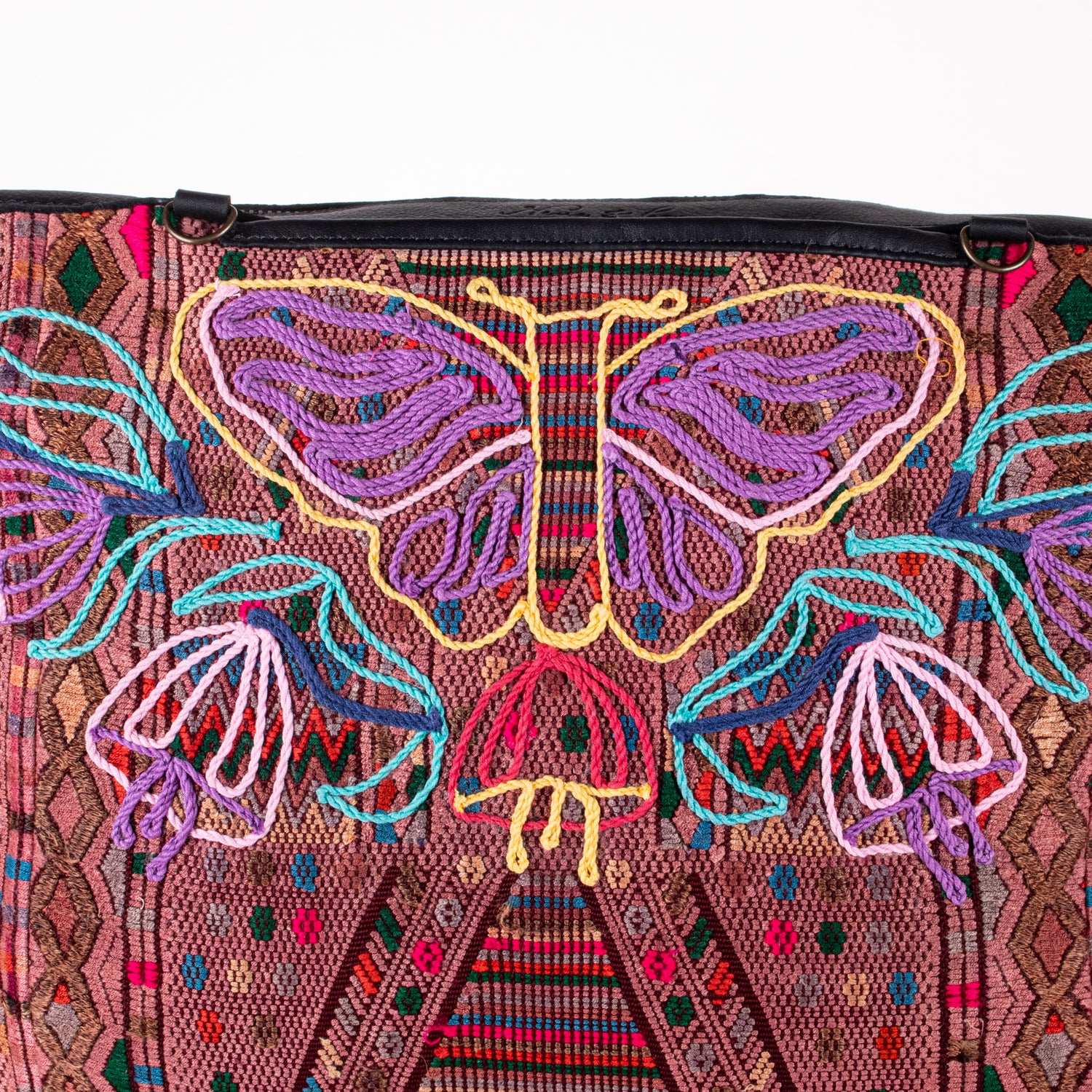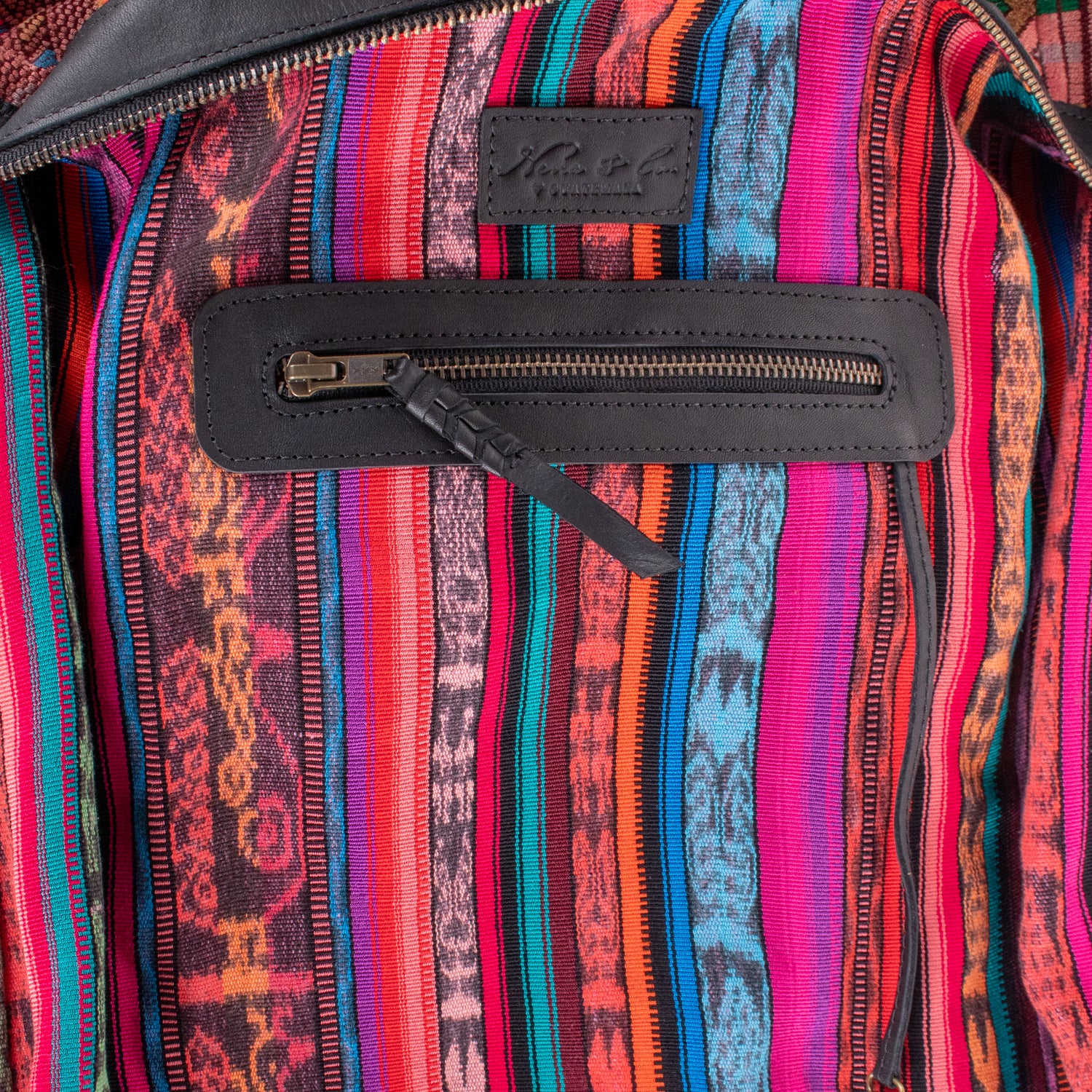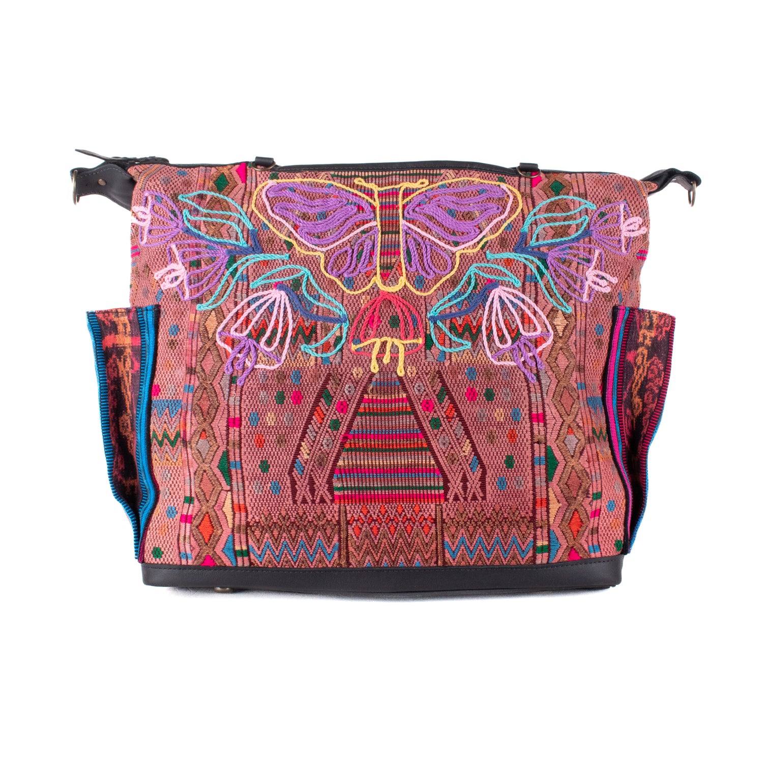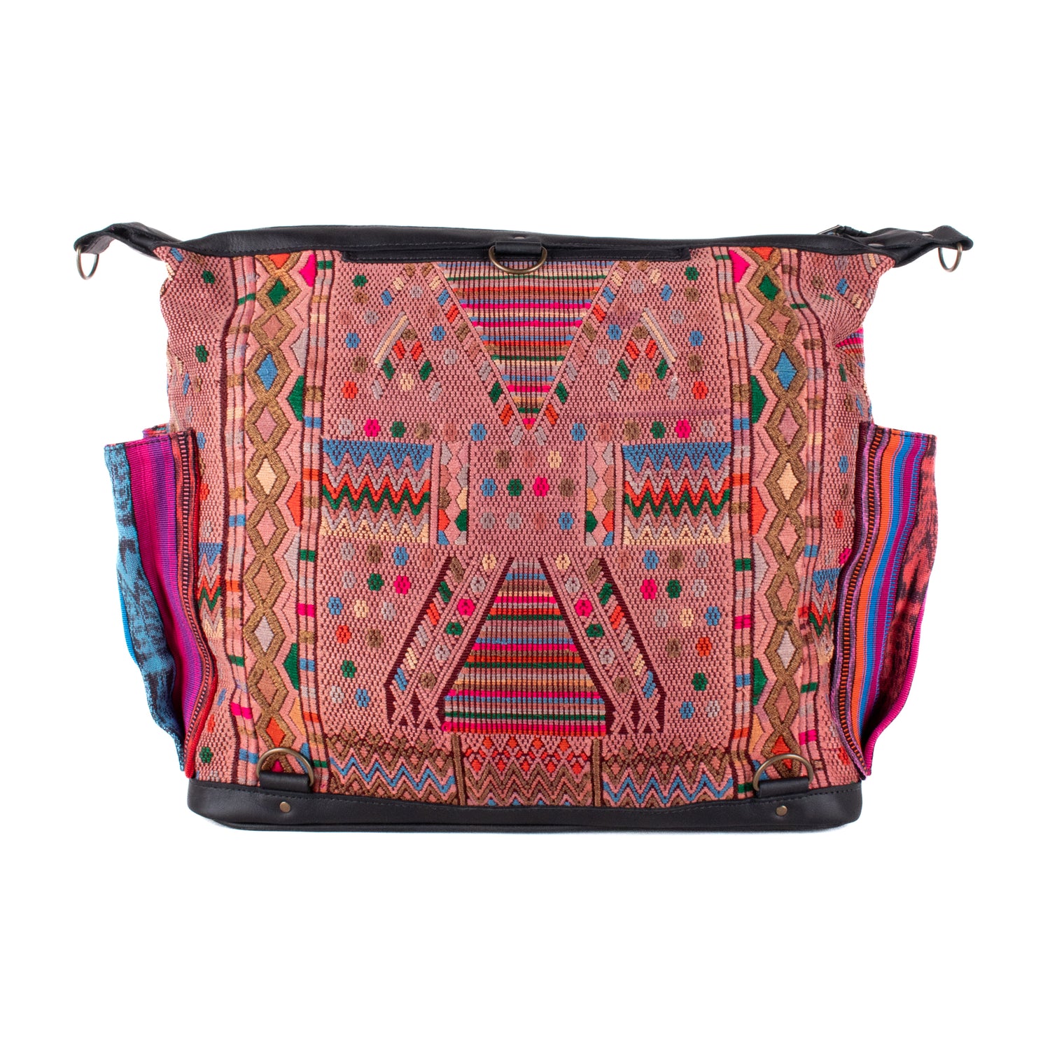 Many unique Maya symbols can be found in our One of a Kind Collection. The fabric we use for this collection is made from upcycled vintage huipiles (traditional attire worn by women in Guatemala) that were handwoven by Artisans up to 10 years ago, and they have lived a full life before being incorporated into your leather bag!