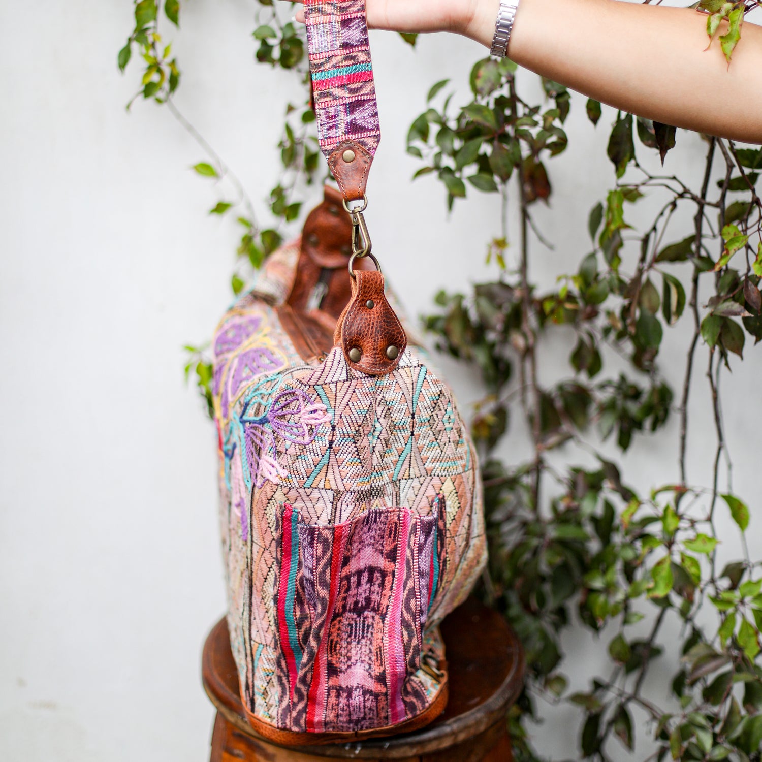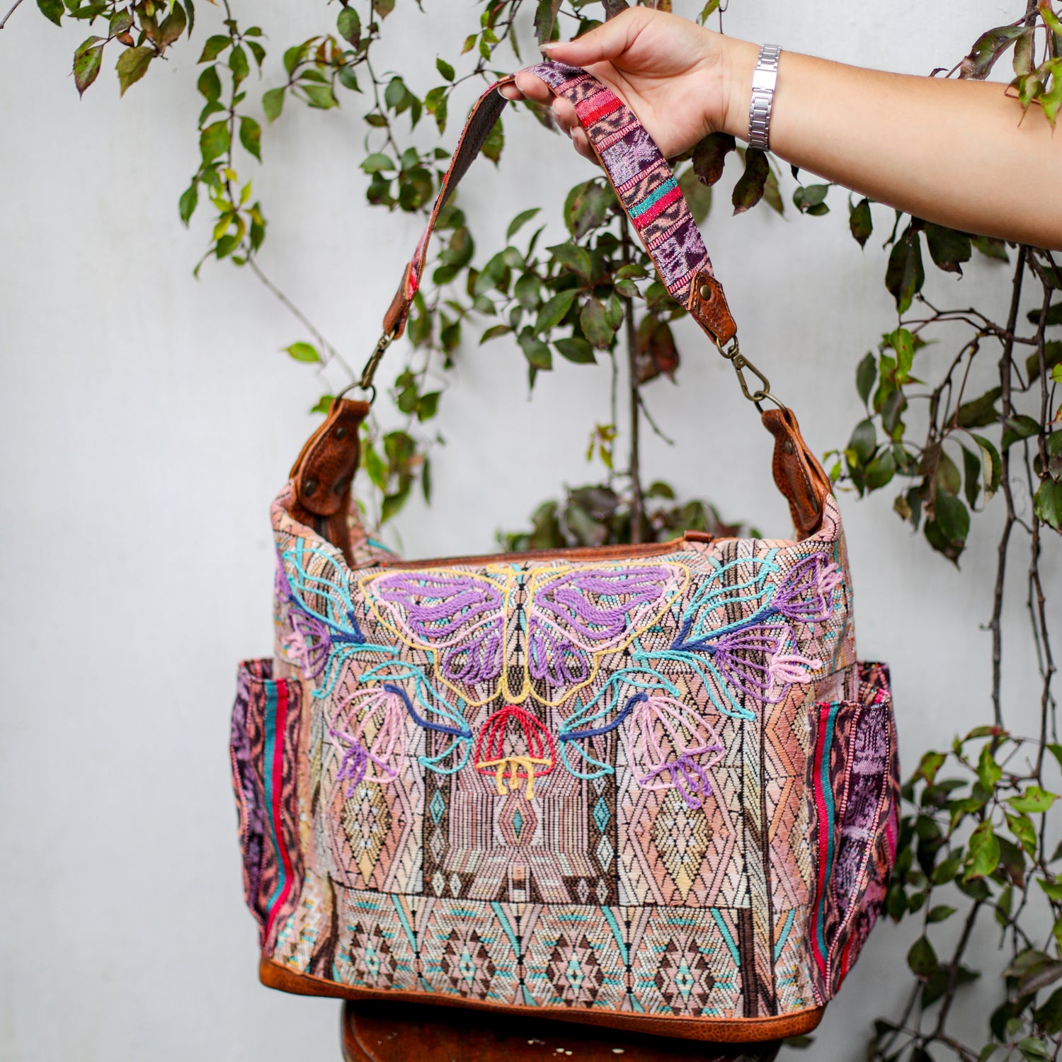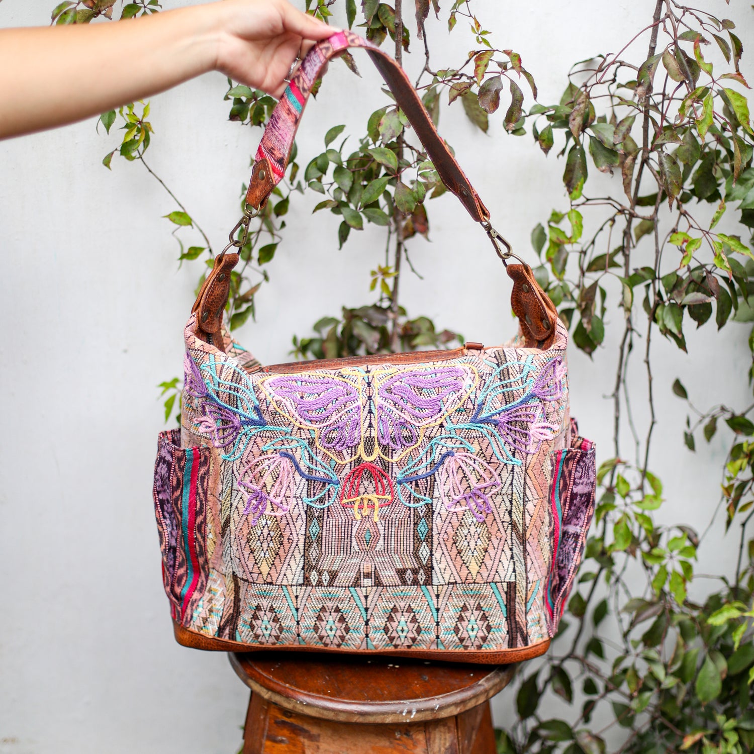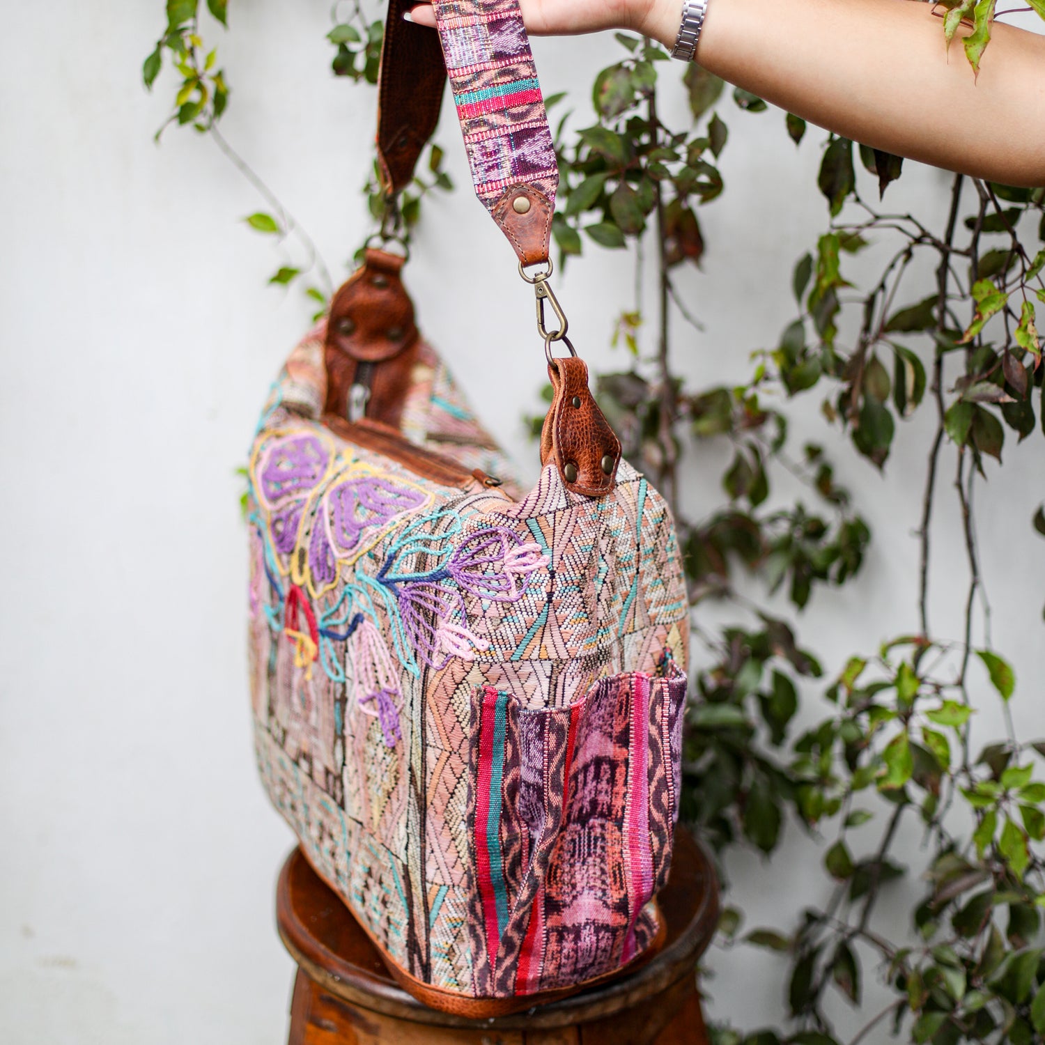 We make every effort to provide our customers with the best-handcrafted and high-quality bags. Please note that all our processes to make the bags are done by hand, from curing, cutting, and treating the leather to using up-cycled huipils. Our bags have natural characteristics and qualities that should not be considered as flaws or as damage because they do not interfere with the functionality of the bag. We up-cycle vintage Maya clothing to make beautiful one-of-a-kind products. Many times you will find snags in the pattern. This is normal. Should your patterned huipil snag you can snip the loose threads with scissors. Do not pull them.