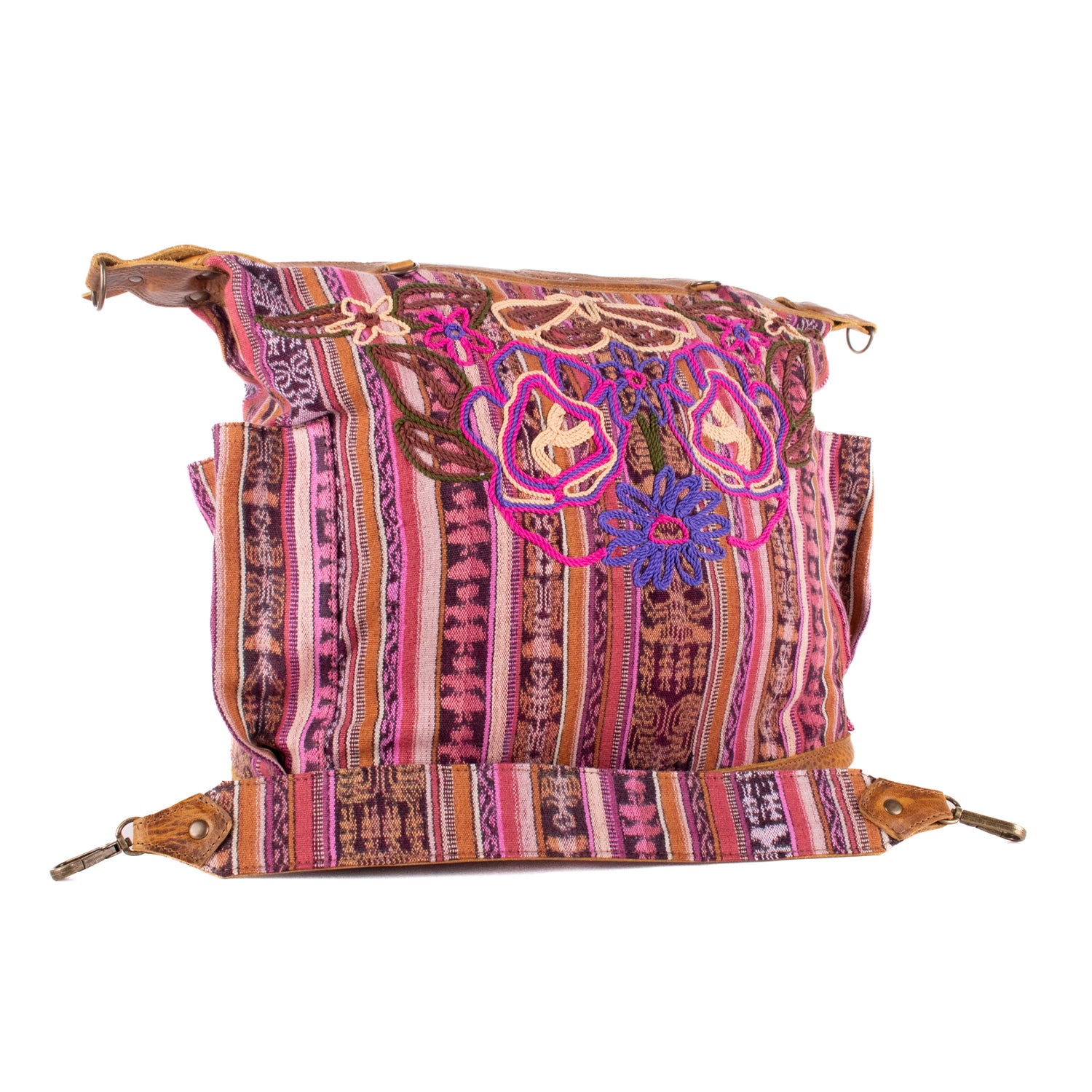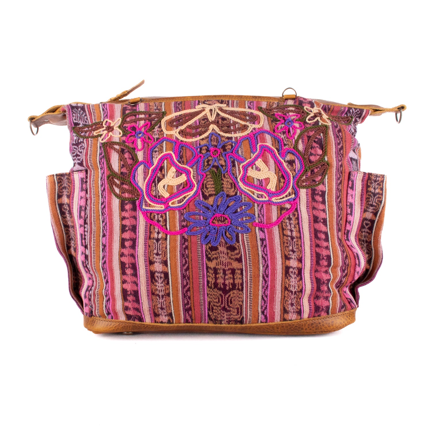 We make every effort to provide our customers with the best-handcrafted and high-quality bags. Please note that all our processes to make the bags are done by hand, from curing, cutting, and treating the leather to using up-cycled huipils. Our bags have natural characteristics and qualities that should not be considered as flaws or as damage because they do not interfere with the functionality of the bag. We up-cycle vintage Maya clothing to make beautiful one-of-a-kind products. Many times you will find snags in the pattern. This is normal. Should your patterned huipil snag you can snip the loose threads with scissors. Do not pull them.