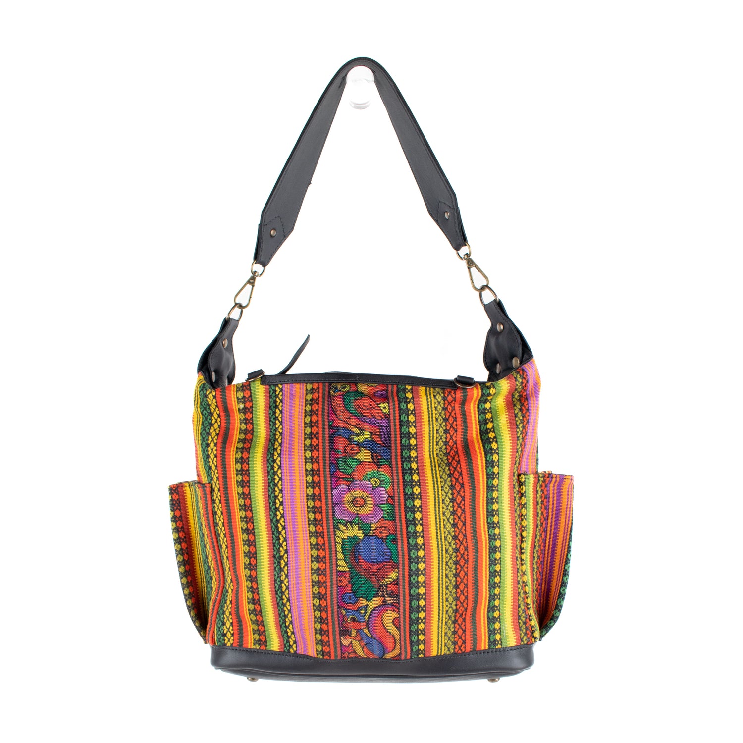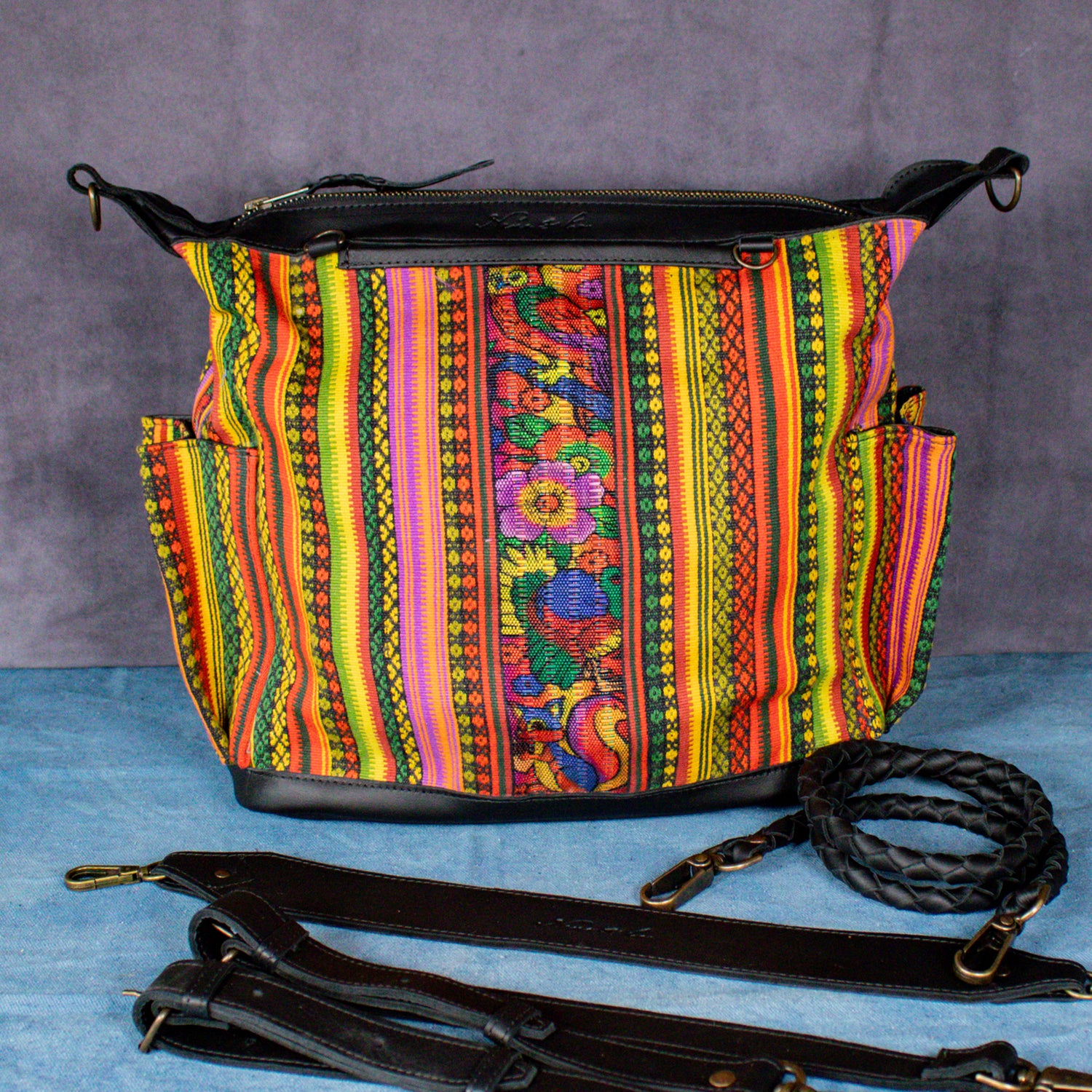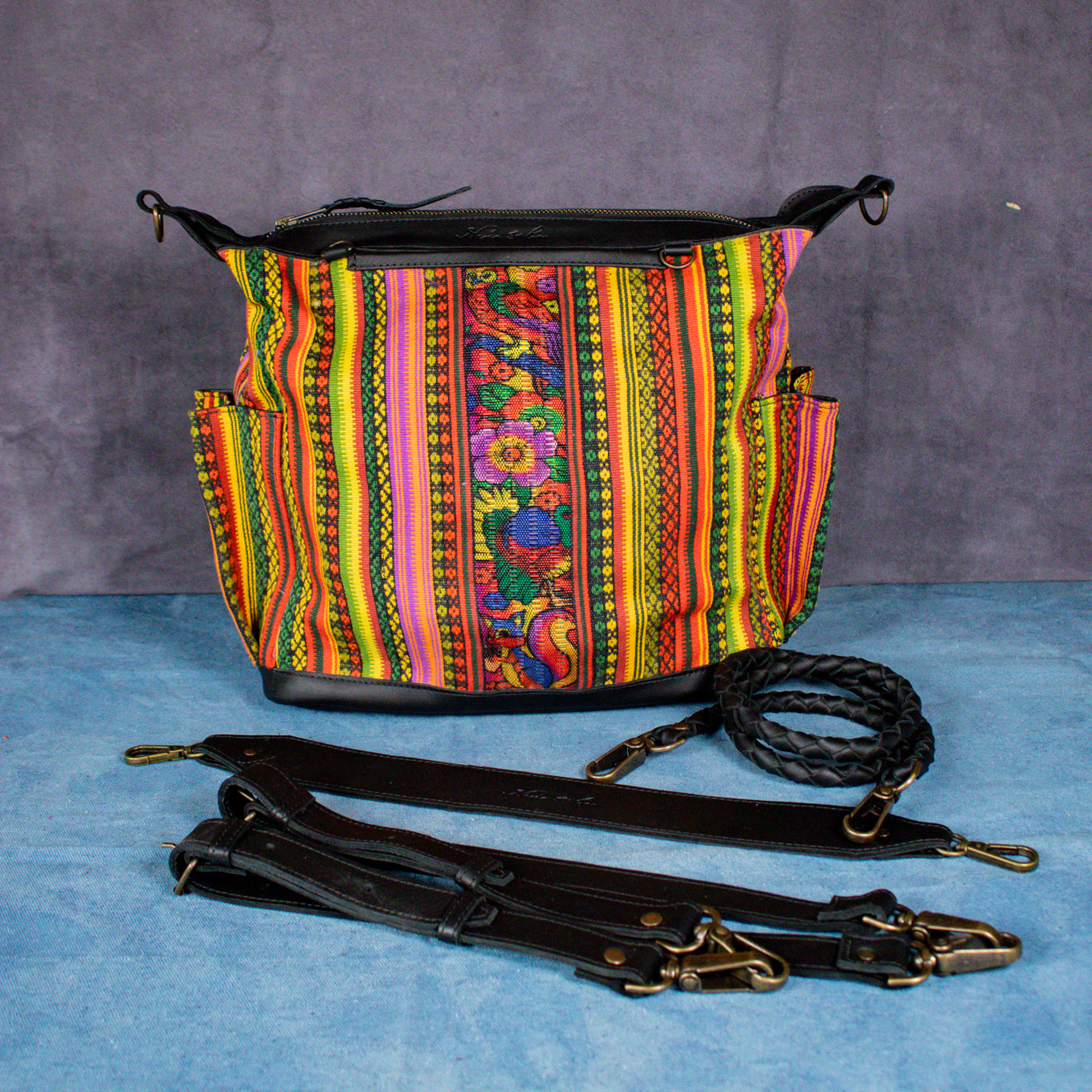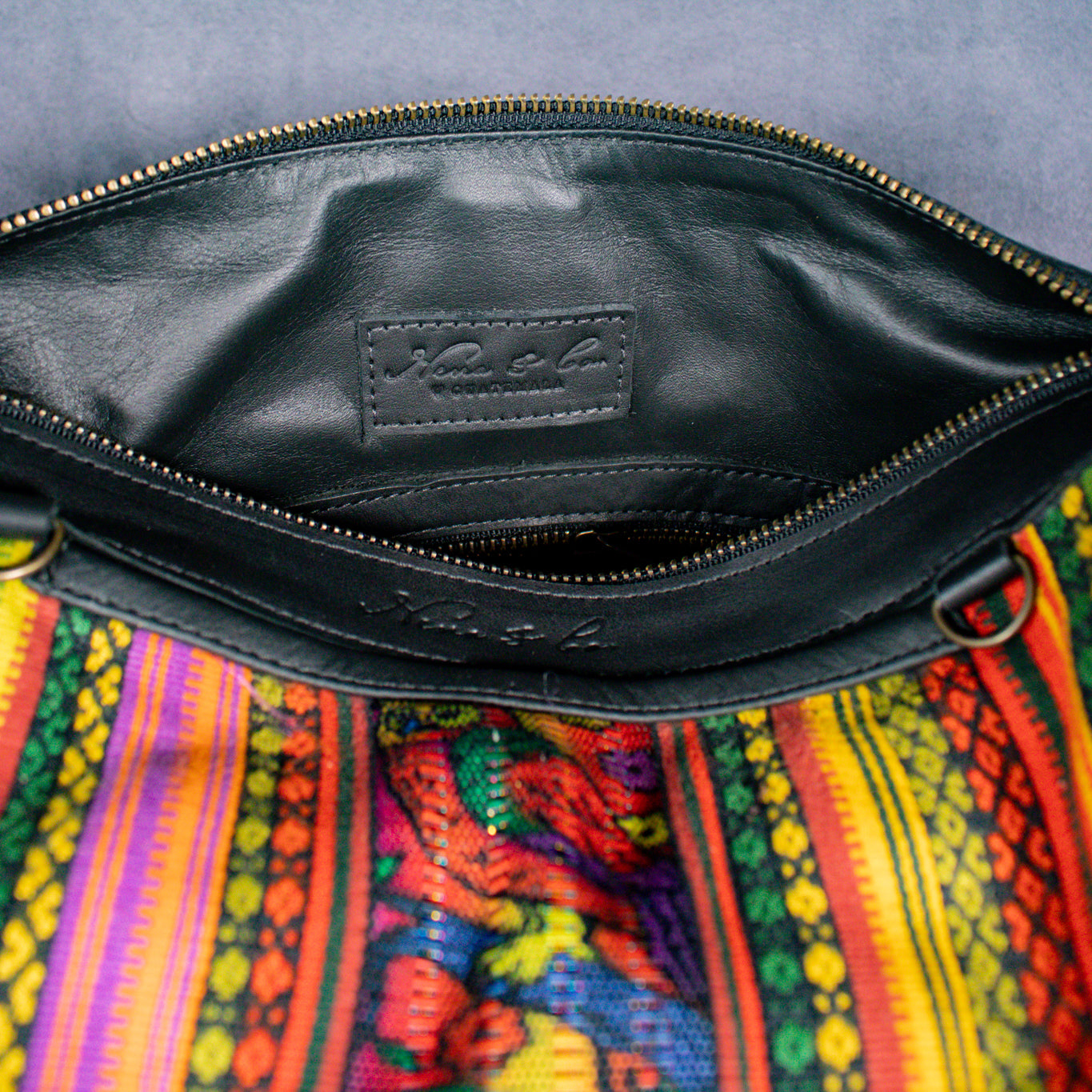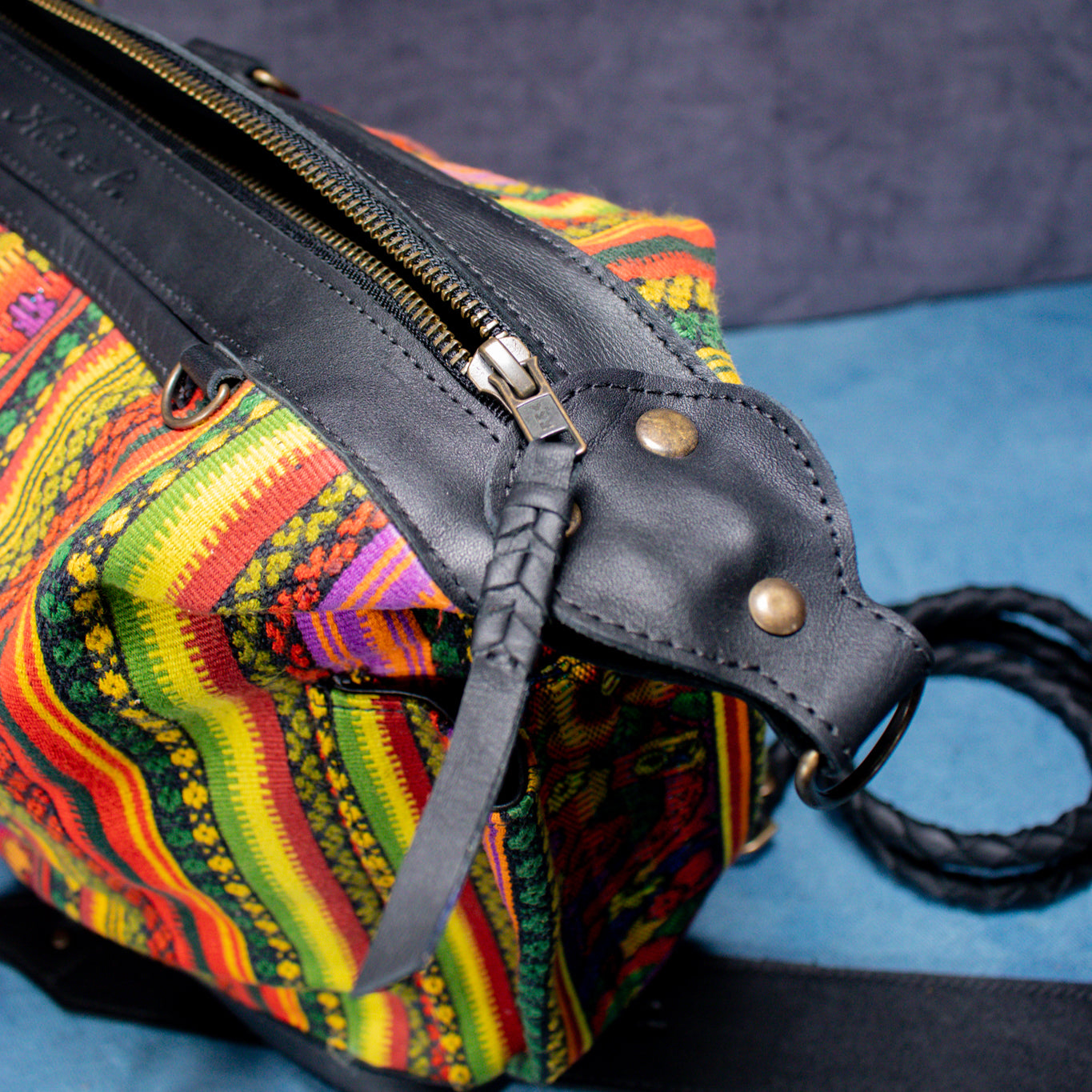 We make every effort to provide our customers with the best-handcrafted and high-quality bags. Please note that all our processes to make the bags are done by hand, from curing, cutting, and treating the leather to using up-cycled huipils. Our bags have natural characteristics and qualities that should not be considered as flaws or as damage because they do not interfere with the functionality of the bag. We up-cycle vintage Maya clothing to make beautiful one-of-a-kind products. Many times you will find snags in the pattern. This is normal. Should your patterned huipil snag you can snip the loose threads with scissors. Do not pull them.
