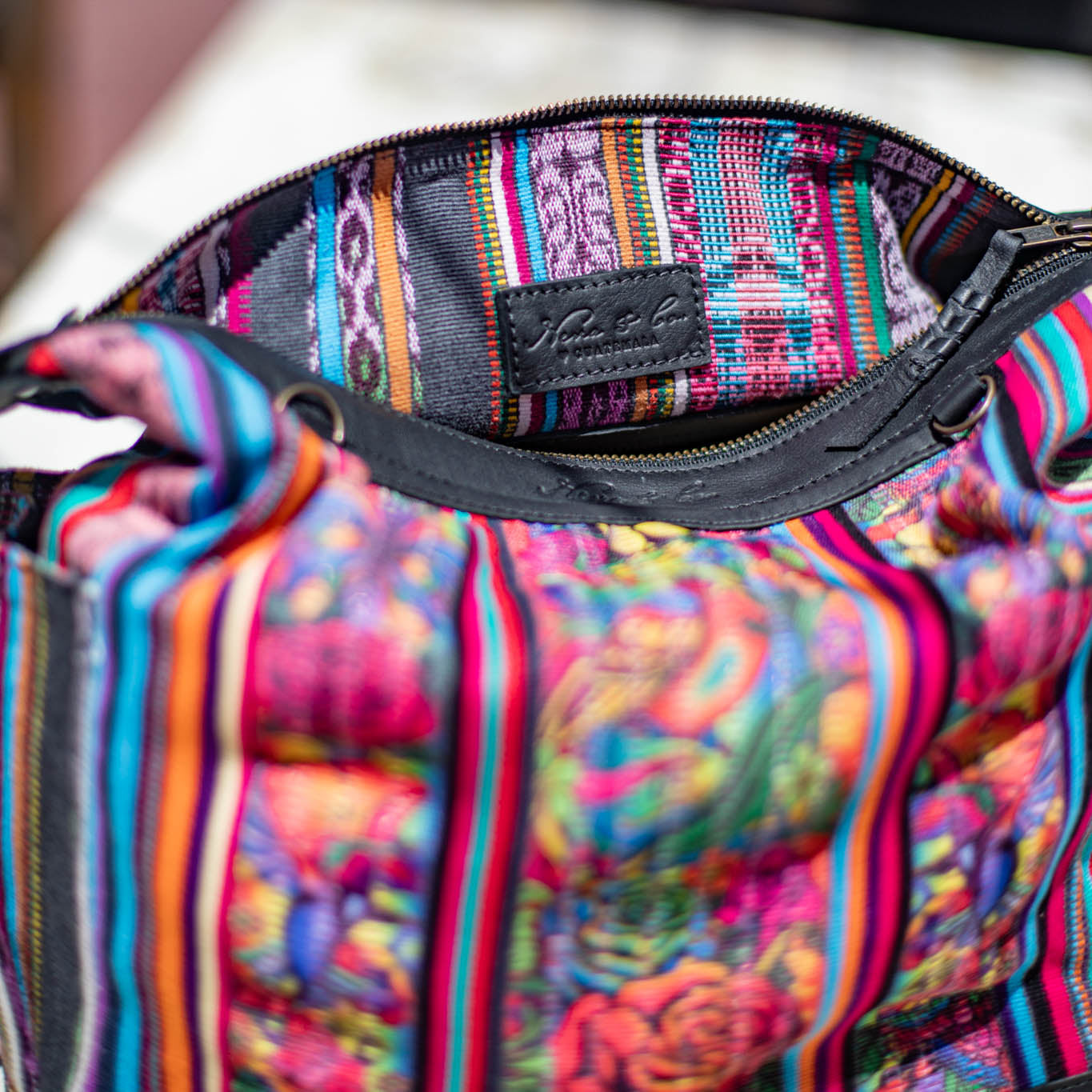 We make every effort to provide our customers with the best-handcrafted and high-quality bags. Please note that all our processes to make the bags are done by hand, from curing, cutting, and treating the leather to using up-cycled huipils. Our bags have natural characteristics and qualities that should not be considered as flaws or as damage because they do not interfere with the functionality of the bag. We up-cycle vintage Maya clothing to make beautiful one-of-a-kind products. Many times you will find snags in the pattern. This is normal. Should your patterned huipil snag you can snip the loose threads with scissors. Do not pull them.