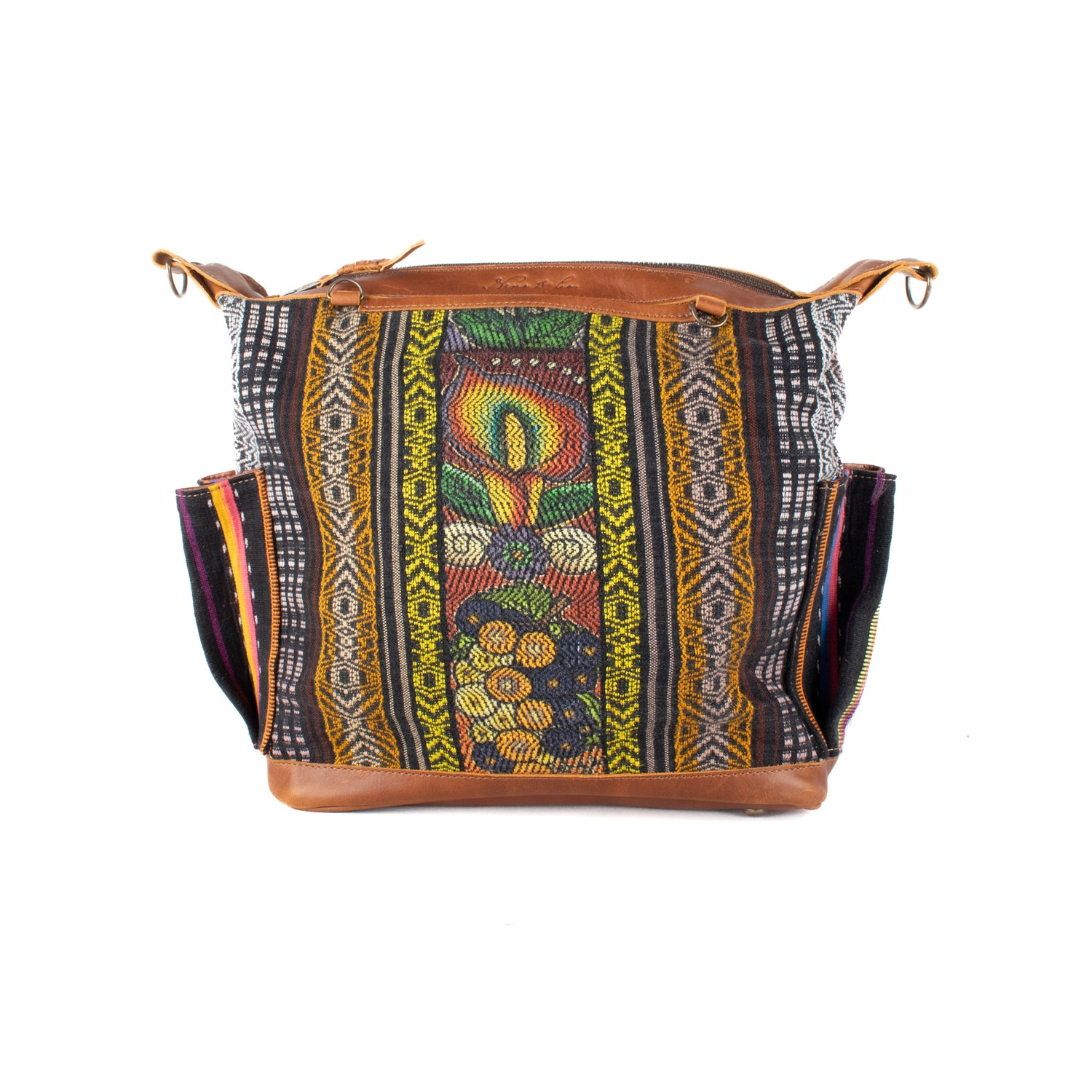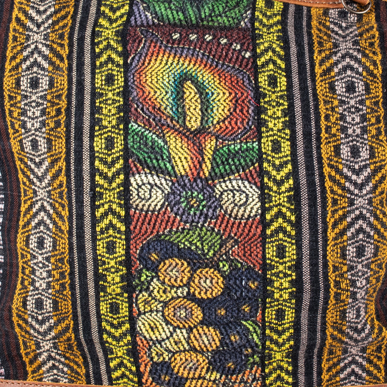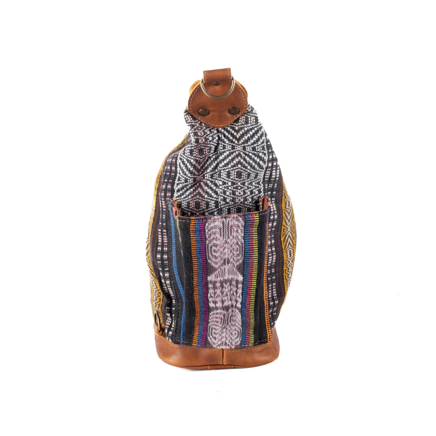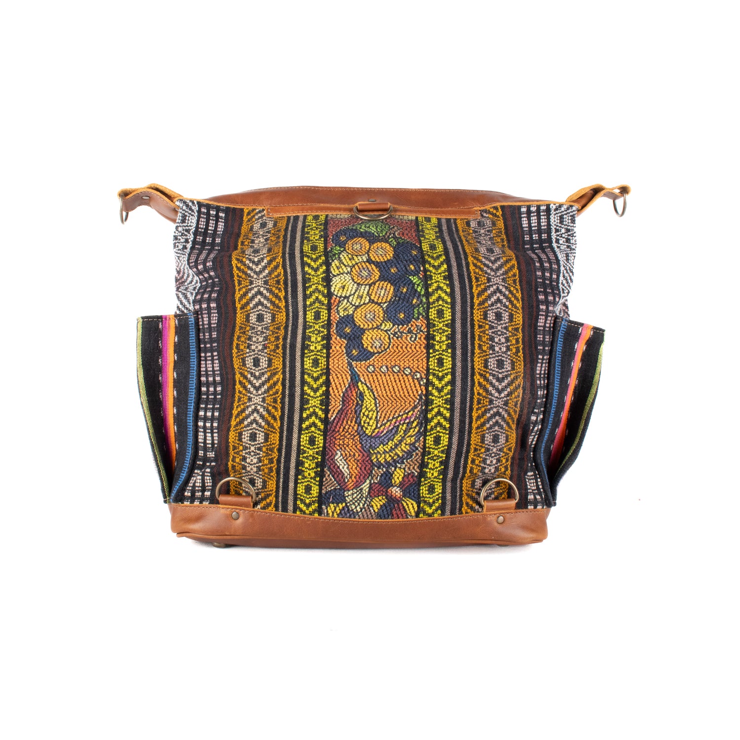 Many unique Maya symbols can be found in our One of a Kind Collection. The fabric we use for this collection is made from upcycled vintage huipiles (traditional attire worn by women in Guatemala) that were handwoven by Artisans up to 10 years ago, and they have lived a full life before being incorporated into your leather bag!