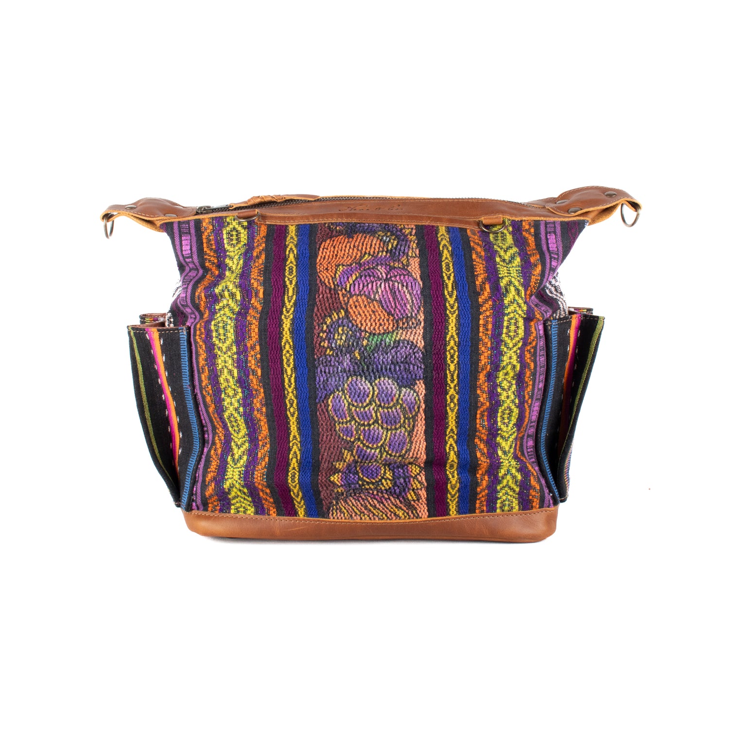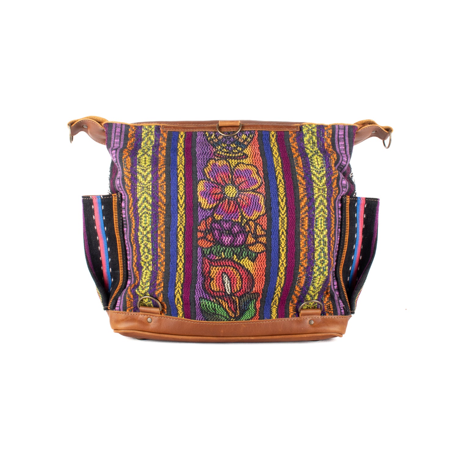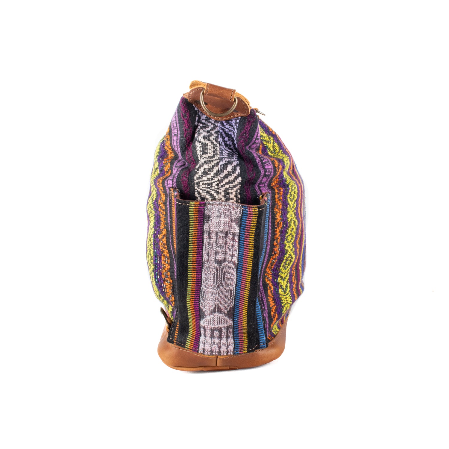 Many unique Maya symbols can be found in our One of a Kind Collection. The fabric we use for this collection is made from upcycled vintage huipiles (traditional attire worn by women in Guatemala) that were handwoven by Artisans up to 10 years ago, and they have lived a full life before being incorporated into your leather bag!
