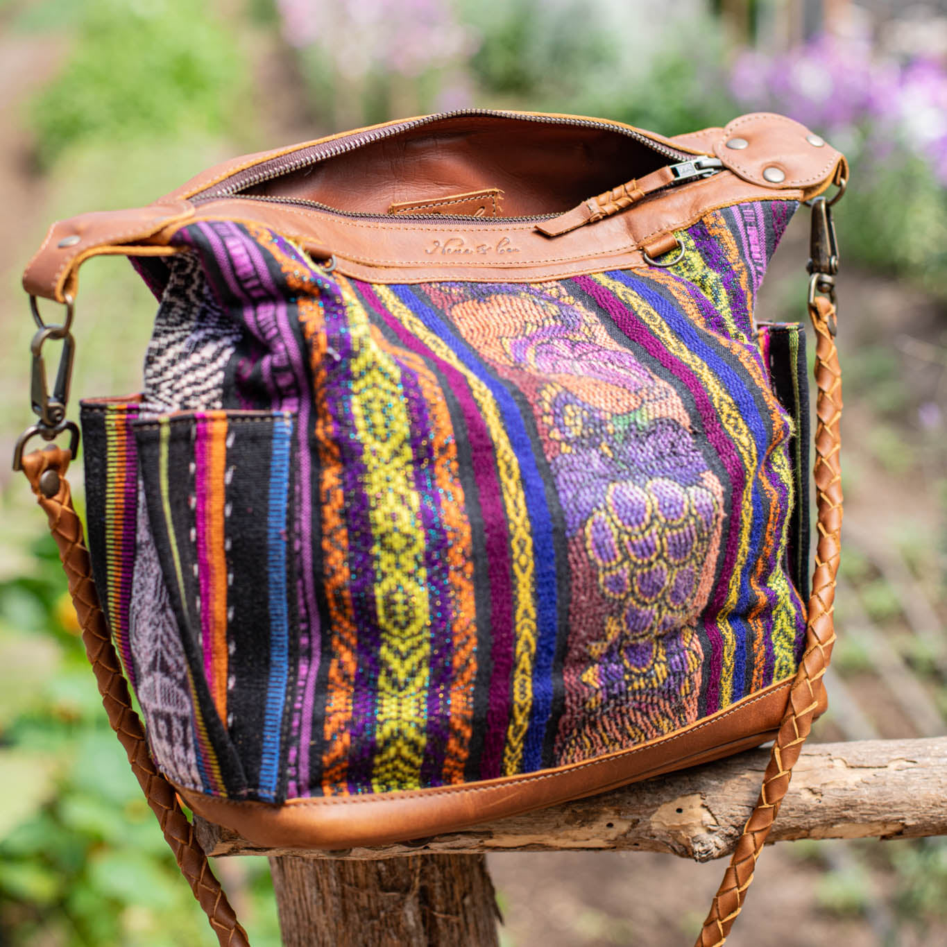 We make every effort to provide our customers with the best-handcrafted and high-quality bags. Please note that all our processes to make the bags are done by hand, from curing, cutting, and treating the leather to using up-cycled huipils. Our bags have natural characteristics and qualities that should not be considered as flaws or as damage because they do not interfere with the functionality of the bag. We up-cycle vintage Maya clothing to make beautiful one-of-a-kind products. Many times you will find snags in the pattern. This is normal. Should your patterned huipil snag you can snip the loose threads with scissors. Do not pull them.