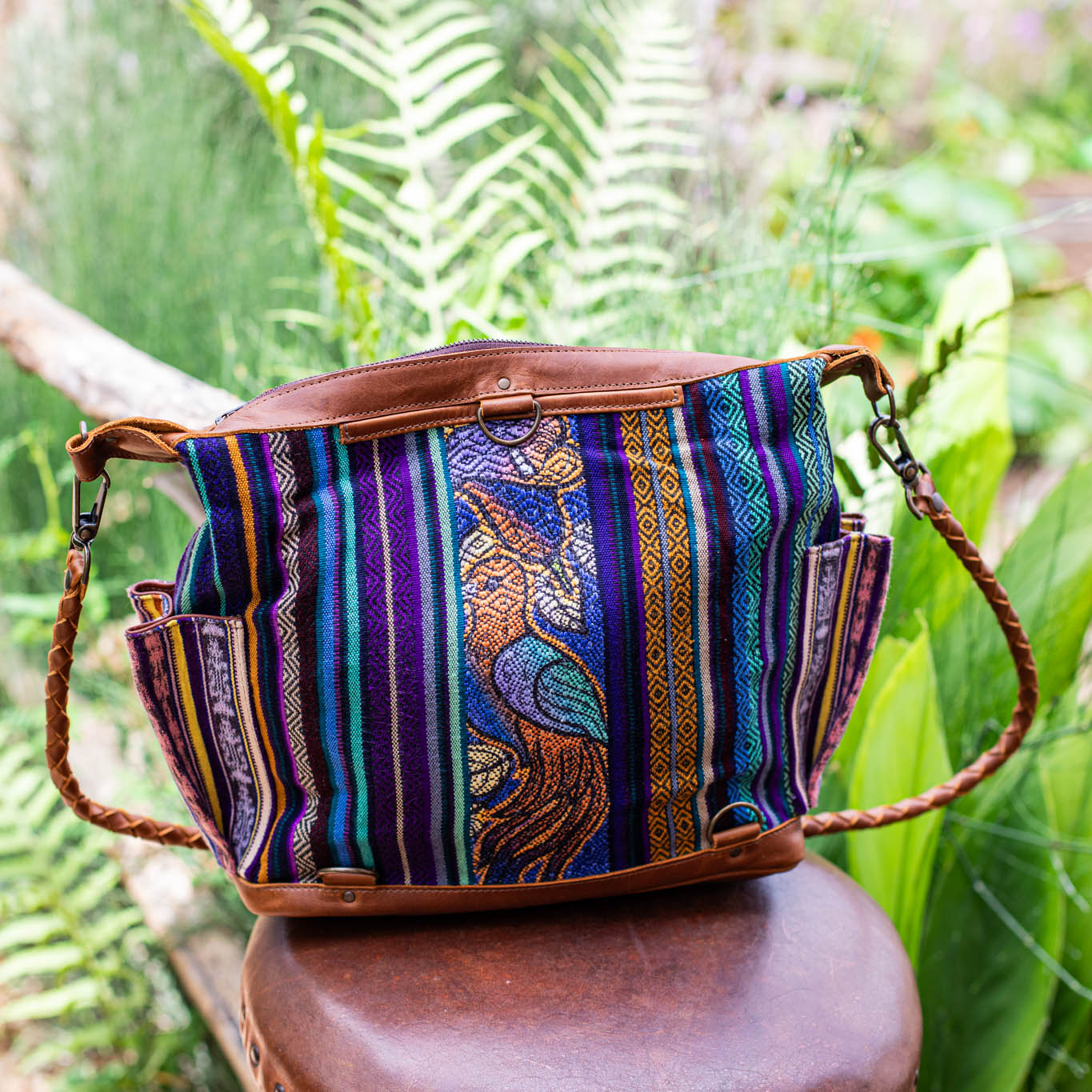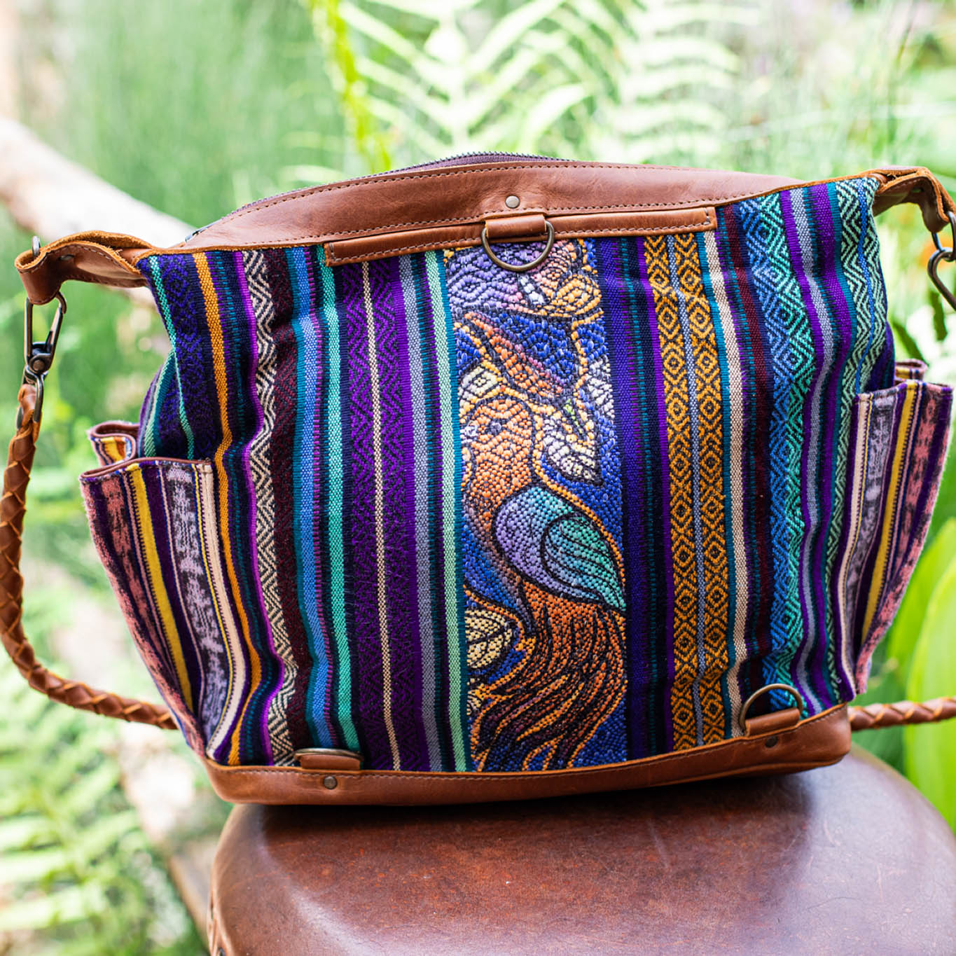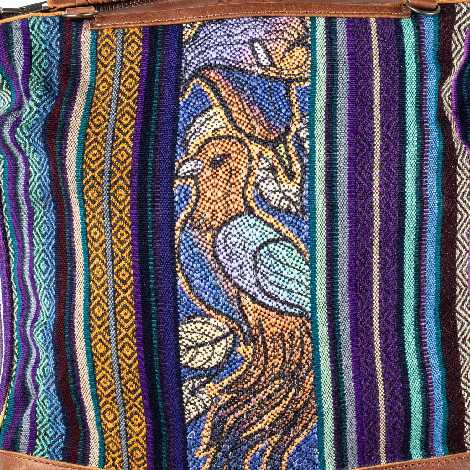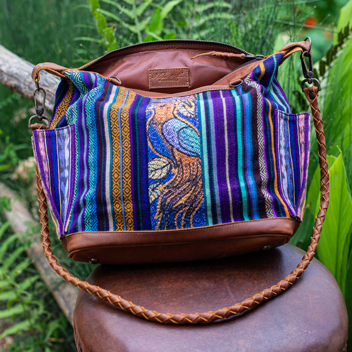 Many unique Maya symbols can be found in our One of a Kind Collection. The fabric we use for this collection is made from upcycled vintage huipiles (traditional attire worn by women in Guatemala) that were handwoven by Artisans up to 10 years ago, and they have lived a full life before being incorporated into your leather bag!