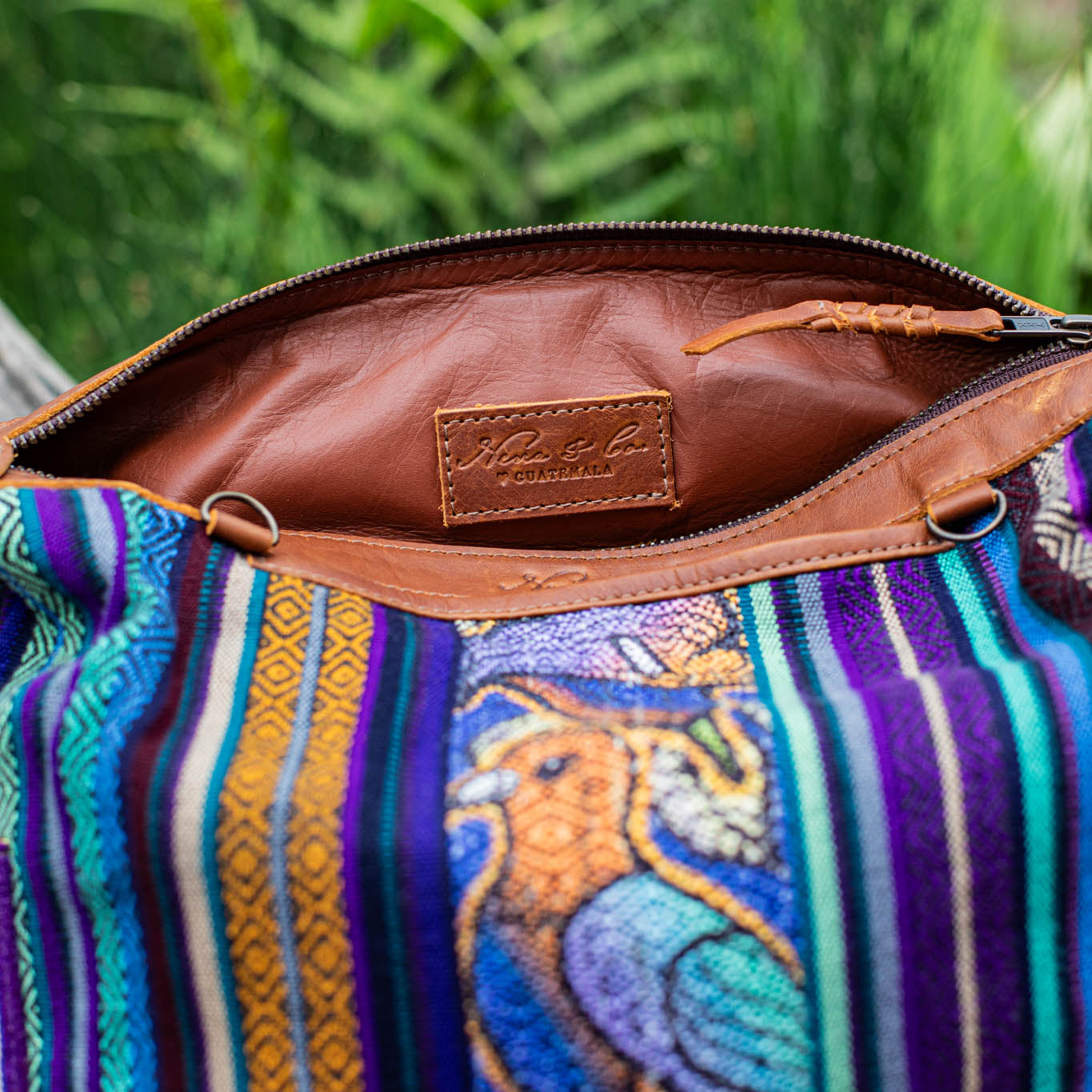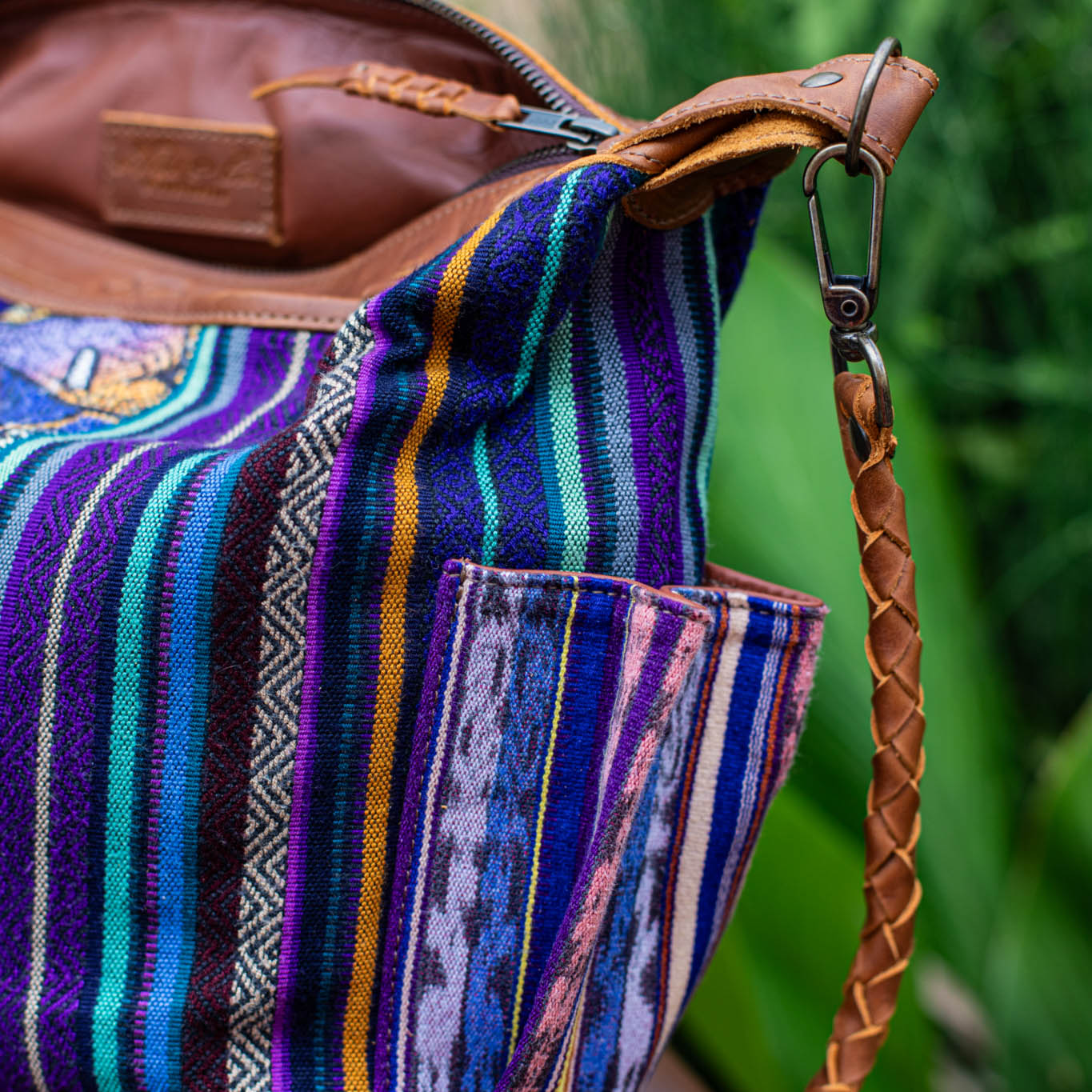 We make every effort to provide our customers with the best-handcrafted and high-quality bags. Please note that all our processes to make the bags are done by hand, from curing, cutting, and treating the leather to using up-cycled huipils. Our bags have natural characteristics and qualities that should not be considered as flaws or as damage because they do not interfere with the functionality of the bag. We up-cycle vintage Maya clothing to make beautiful one-of-a-kind products. Many times you will find snags in the pattern. This is normal. Should your patterned huipil snag you can snip the loose threads with scissors. Do not pull them.