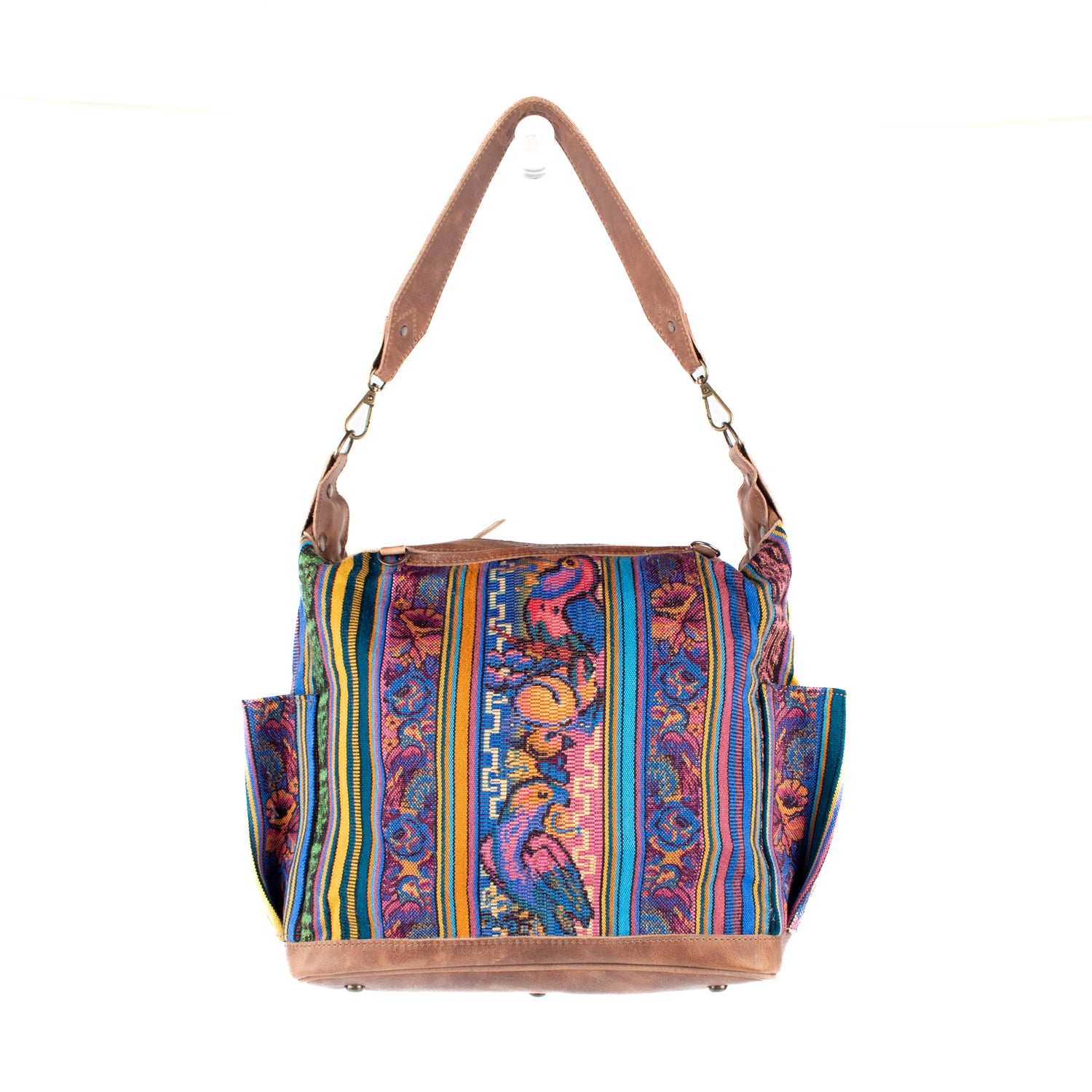 We make every effort to provide our customers with the best-handcrafted and high-quality bags. Please note that all our processes to make the bags are done by hand, from curing, cutting, and treating the leather to using up-cycled huipils. Our bags have natural characteristics and qualities that should not be considered as flaws or as damage because they do not interfere with the functionality of the bag. We up-cycle vintage Maya clothing to make beautiful one-of-a-kind products. Many times you will find snags in the pattern. This is normal. Should your patterned huipil snag you can snip the loose threads with scissors. Do not pull them.