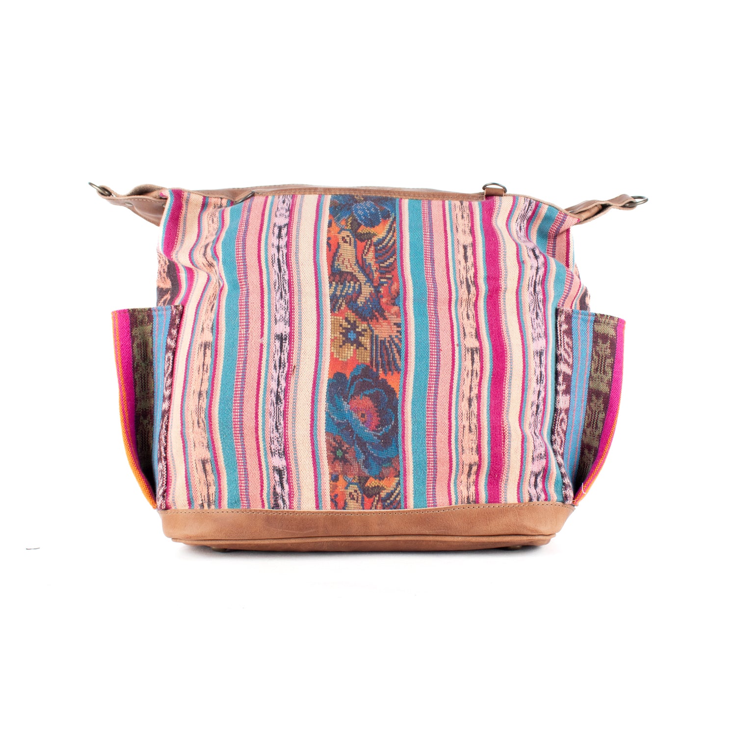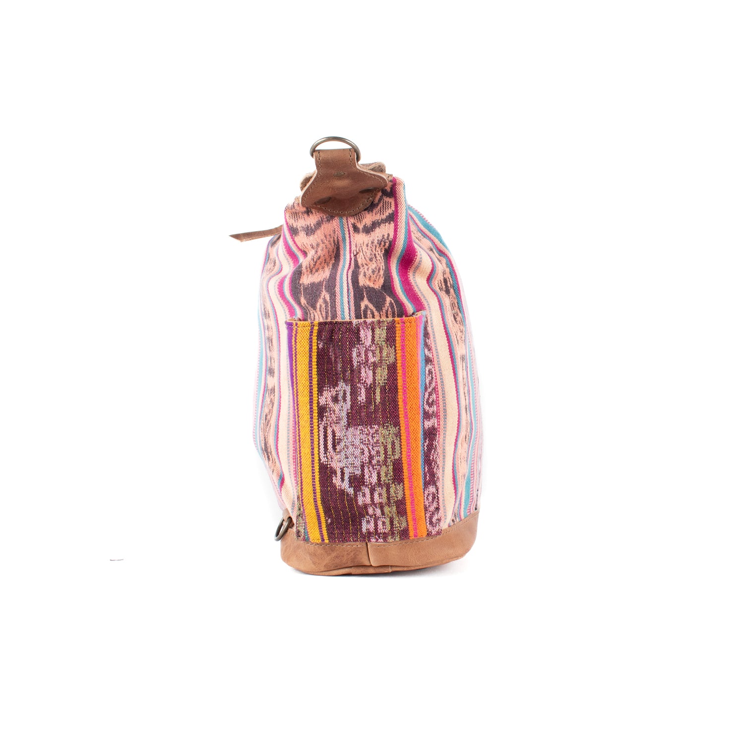 Many unique Maya symbols can be found in our One of a Kind Collection. The fabric we use for this collection is made from upcycled vintage huipiles (traditional attire worn by women in Guatemala) that were handwoven by Artisans up to 10 years ago, and they have lived a full life before being incorporated into your leather bag!