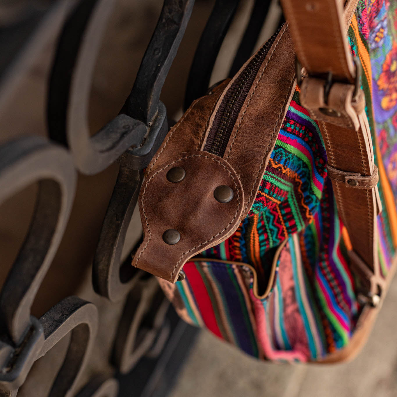 We make every effort to provide our customers with the best-handcrafted and high-quality bags. Please note that all our processes to make the bags are done by hand, from curing, cutting, and treating the leather to using up-cycled huipils. Our bags have natural characteristics and qualities that should not be considered as flaws or as damage because they do not interfere with the functionality of the bag. We up-cycle vintage Maya clothing to make beautiful one-of-a-kind products. Many times you will find snags in the pattern. This is normal. Should your patterned huipil snag you can snip the loose threads with scissors. Do not pull them.