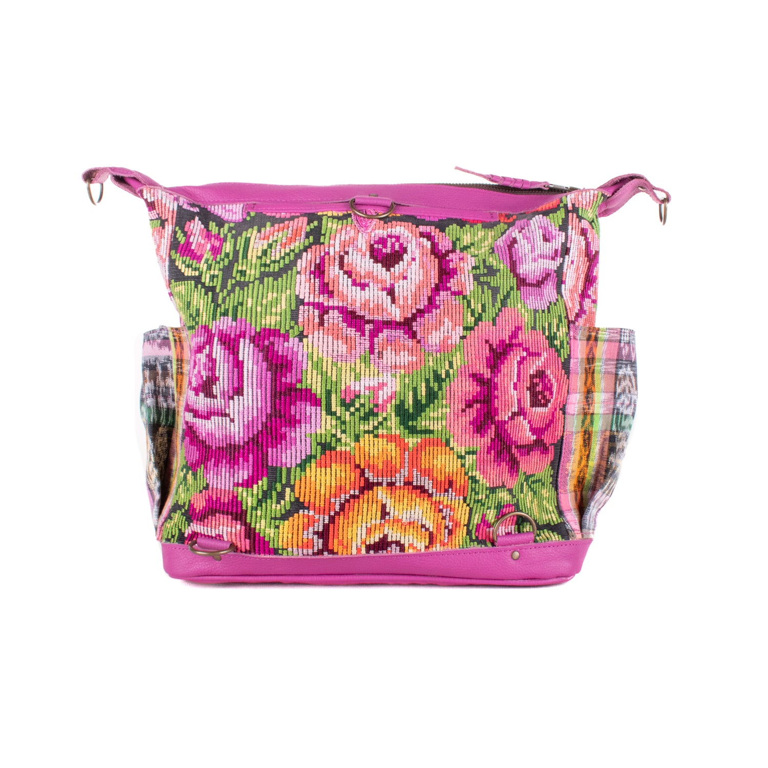 We make every effort to provide our customers with the best-handcrafted and high-quality bags. Please note that all our processes to make the bags are done by hand, from curing, cutting, and treating the leather to using up-cycled huipils. Our bags have natural characteristics and qualities that should not be considered as flaws or as damage because they do not interfere with the functionality of the bag. We up-cycle vintage Maya clothing to make beautiful one-of-a-kind products. Many times you will find snags in the pattern. This is normal. Should your patterned huipil snag you can snip the loose threads with scissors. Do not pull them.