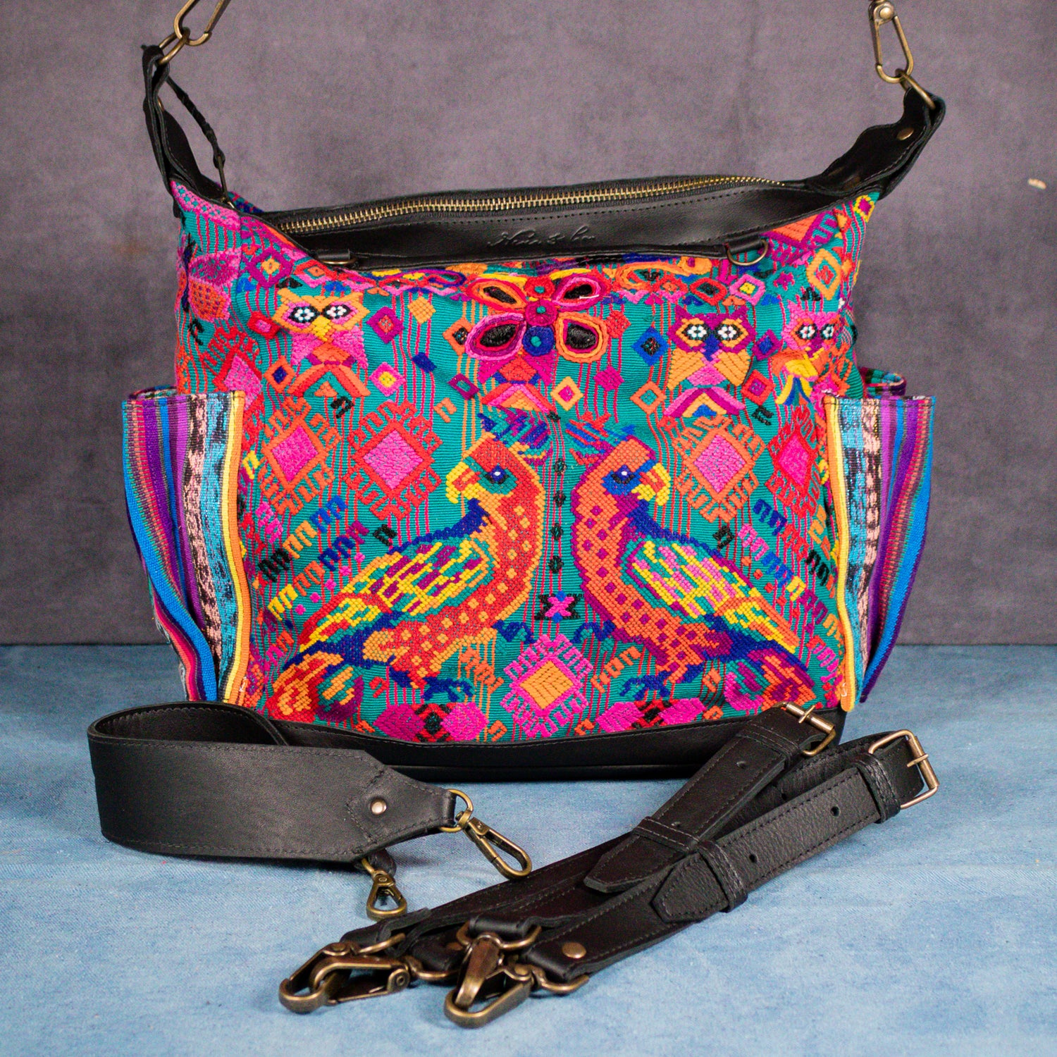 We make every effort to provide our customers with the best-handcrafted and high-quality bags. Please note that all our processes to make the bags are done by hand, from curing, cutting, and treating the leather to using up-cycled huipils. Our bags have natural characteristics and qualities that should not be considered as flaws or as damage because they do not interfere with the functionality of the bag. We up-cycle vintage Maya clothing to make beautiful one-of-a-kind products. Many times you will find snags in the pattern. This is normal. Should your patterned huipil snag you can snip the loose threads with scissors. Do not pull them.