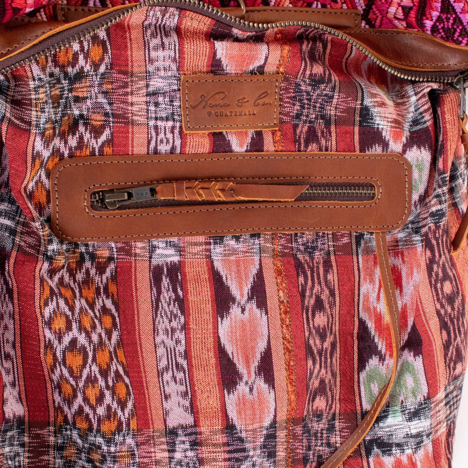 We make every effort to provide our customers with the best-handcrafted and high-quality bags. Please note that all our processes to make the bags are done by hand, from curing, cutting, and treating the leather to using up-cycled huipils. Our bags have natural characteristics and qualities that should not be considered as flaws or as damage because they do not interfere with the functionality of the bag. We up-cycle vintage Maya clothing to make beautiful one-of-a-kind products. Many times you will find snags in the pattern. This is normal. Should your patterned huipil snag you can snip the loose threads with scissors. Do not pull them.