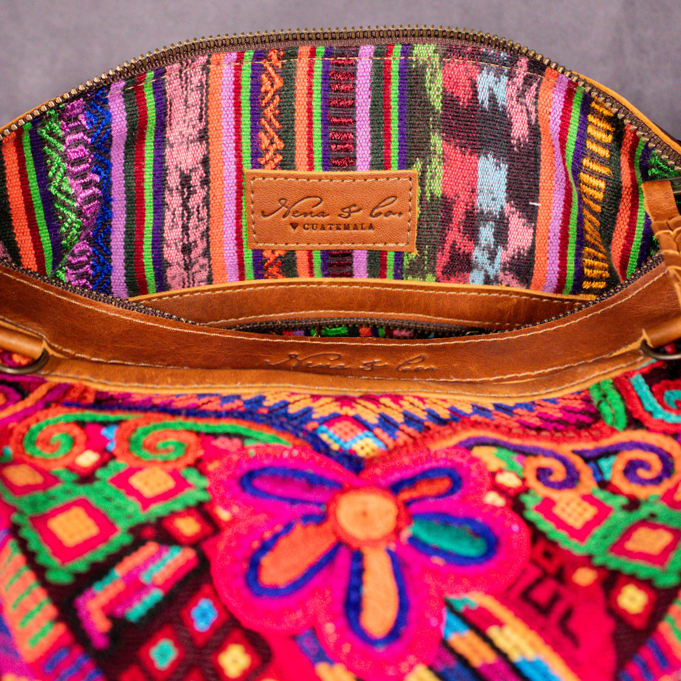 We make every effort to provide our customers with the best-handcrafted and high-quality bags. Please note that all our processes to make the bags are done by hand, from curing, cutting, and treating the leather to using up-cycled huipils. Our bags have natural characteristics and qualities that should not be considered as flaws or as damage because they do not interfere with the functionality of the bag. We up-cycle vintage Maya clothing to make beautiful one-of-a-kind products. Many times you will find snags in the pattern. This is normal. Should your patterned huipil snag you can snip the loose threads with scissors. Do not pull them.