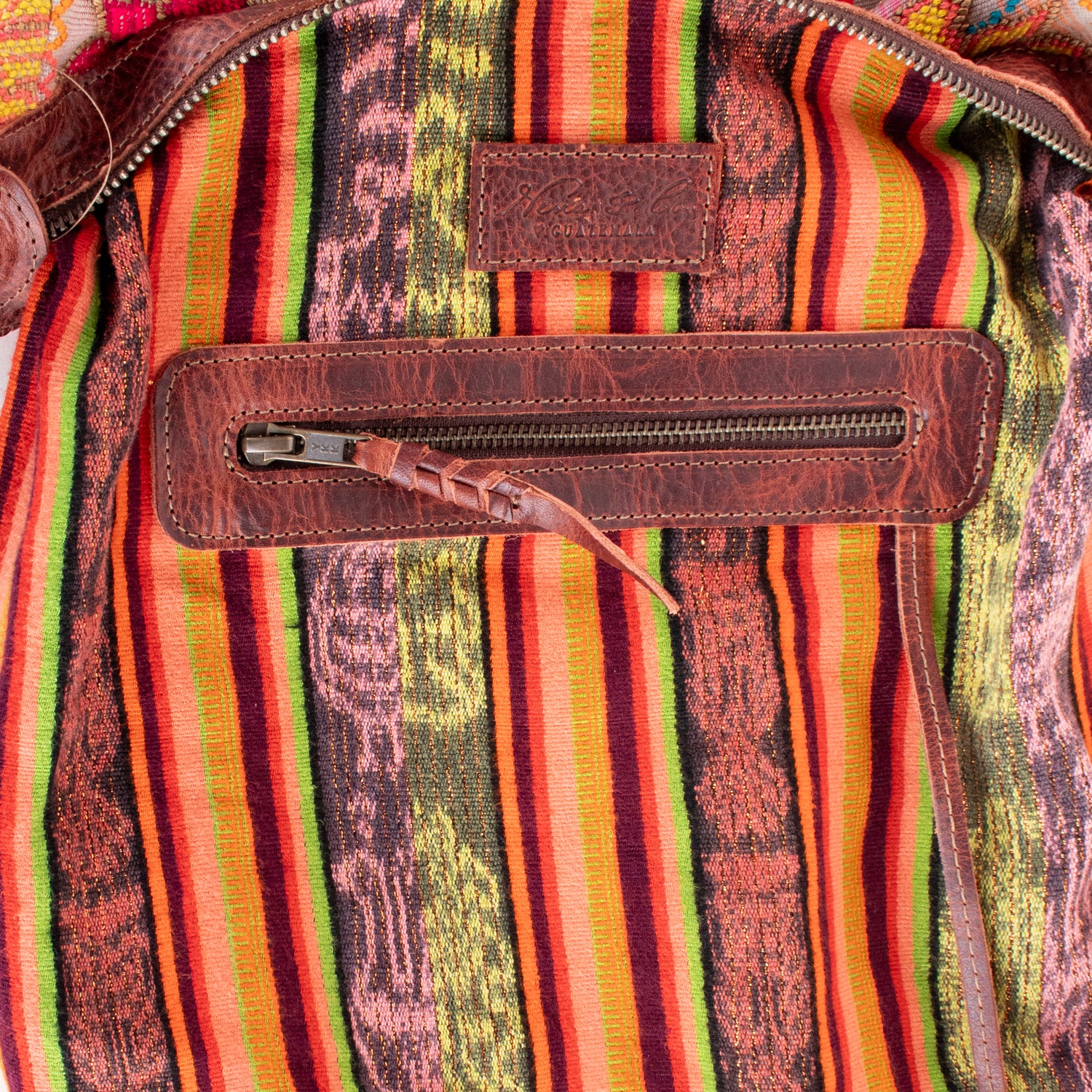 Many unique Maya symbols can be found in our One of a Kind Collection. The fabric we use for this collection is made from upcycled vintage huipiles (traditional attire worn by women in Guatemala) that were handwoven by Artisans up to 10 years ago, and they have lived a full life before being incorporated into your leather bag!