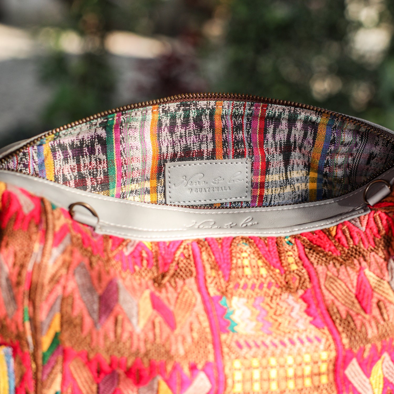 We make every effort to provide our customers with the best-handcrafted and high-quality bags. Please note that all our processes to make the bags are done by hand, from curing, cutting, and treating the leather to using up-cycled huipils. Our bags have natural characteristics and qualities that should not be considered as flaws or as damage because they do not interfere with the functionality of the bag. We up-cycle vintage Maya clothing to make beautiful one-of-a-kind products. Many times you will find snags in the pattern. This is normal. Should your patterned huipil snag you can snip the loose threads with scissors. Do not pull them.