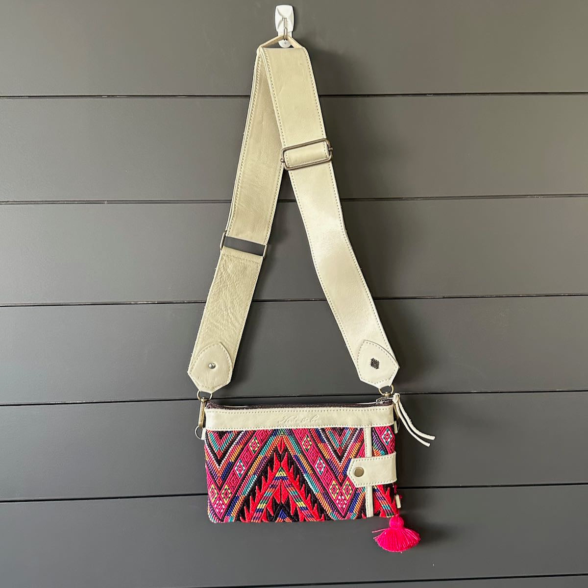 We make every effort to provide our customers with the best-handcrafted and high-quality bags. Please note that all our processes to make the bags are done by hand, from curing, cutting, and treating the leather to using up-cycled huipils. Our bags have natural characteristics and qualities that should not be considered as flaws or as damage because they do not interfere with the functionality of the bag. We up-cycle vintage Maya clothing to make beautiful one-of-a-kind products. Many times you will find snags in the pattern. This is normal. Should your patterned huipil snag you can snip the loose threads with scissors. Do not pull them.