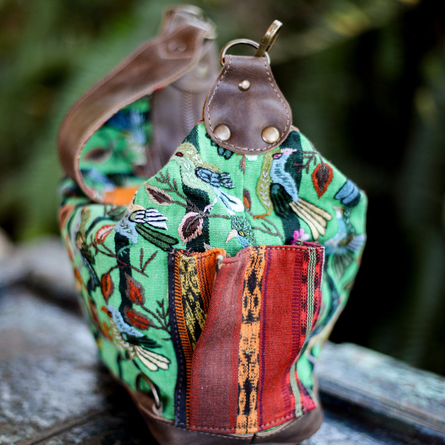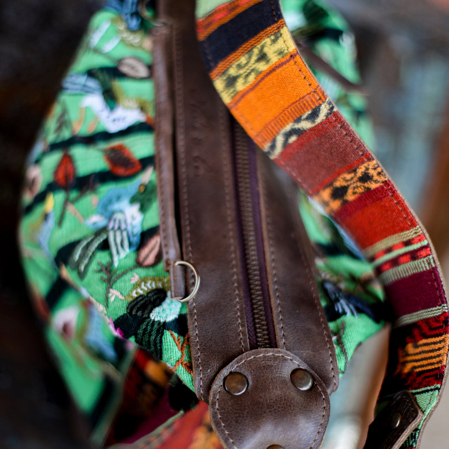 We make every effort to provide our customers with the best-handcrafted and high-quality bags. Please note that all our processes to make the bags are done by hand, from curing, cutting, and treating the leather to using up-cycled huipils. Our bags have natural characteristics and qualities that should not be considered as flaws or as damage because they do not interfere with the functionality of the bag. We up-cycle vintage Maya clothing to make beautiful one-of-a-kind products. Many times you will find snags in the pattern. This is normal. Should your patterned huipil snag you can snip the loose threads with scissors. Do not pull them.
