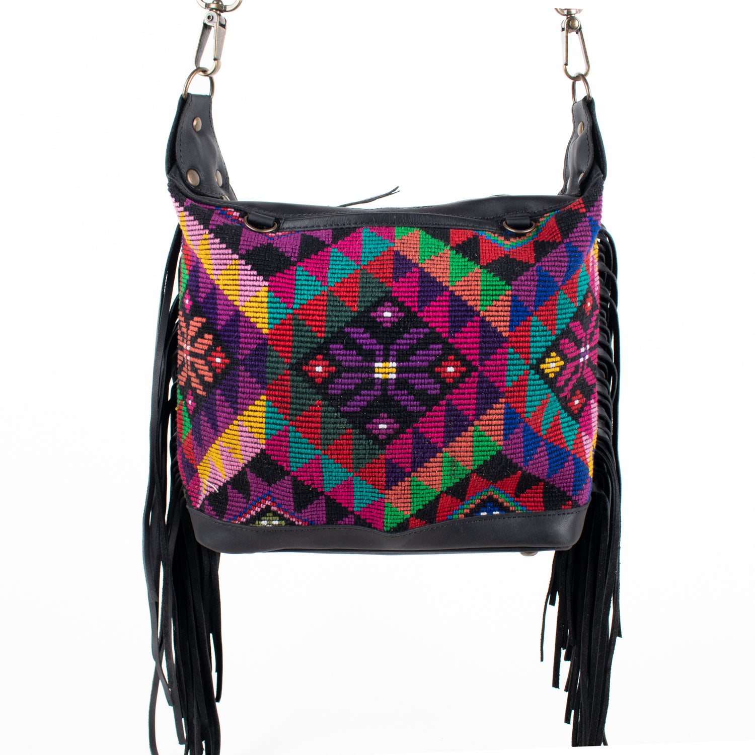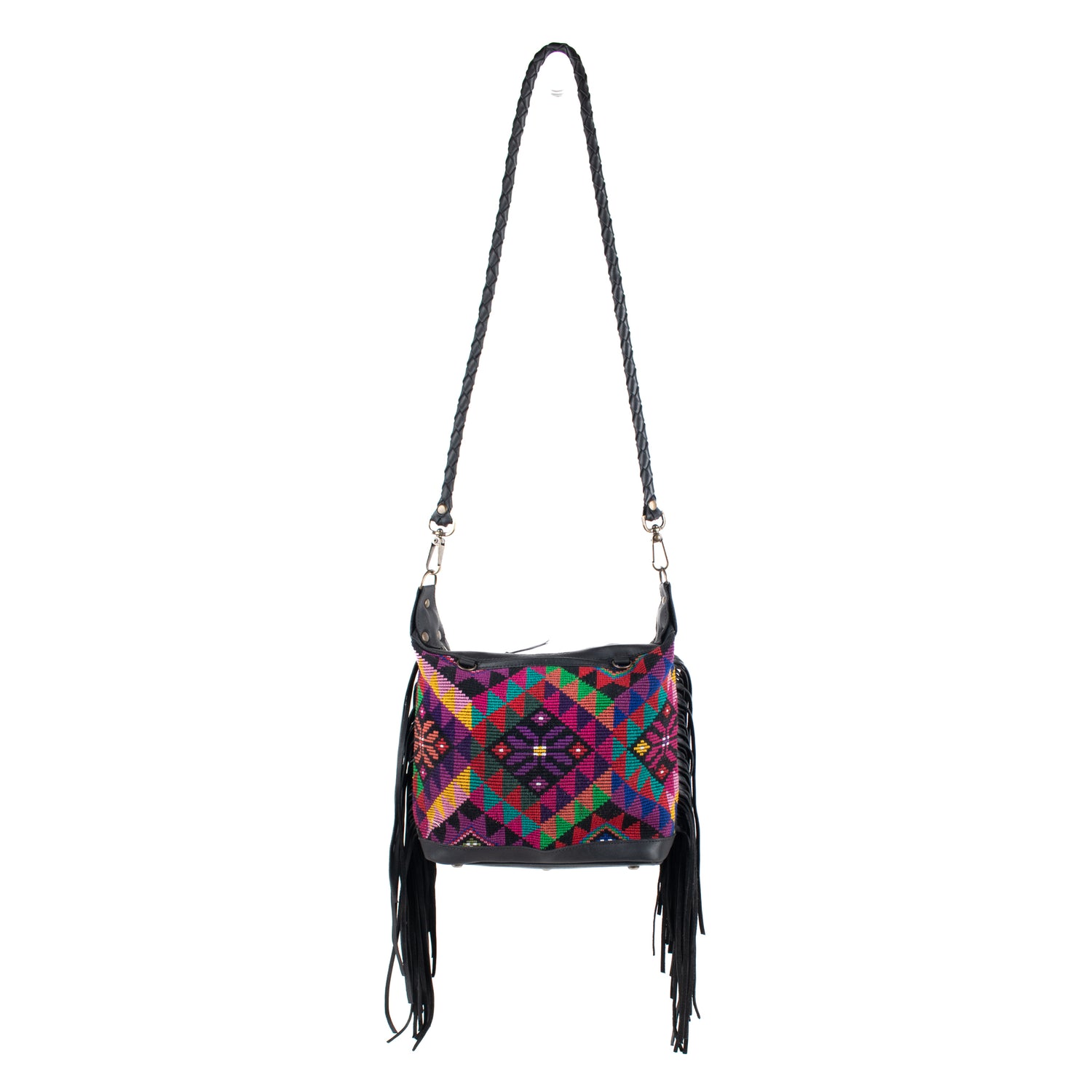 Beatriz mini cdb with fringe - ooak huipil - black - no. 16505