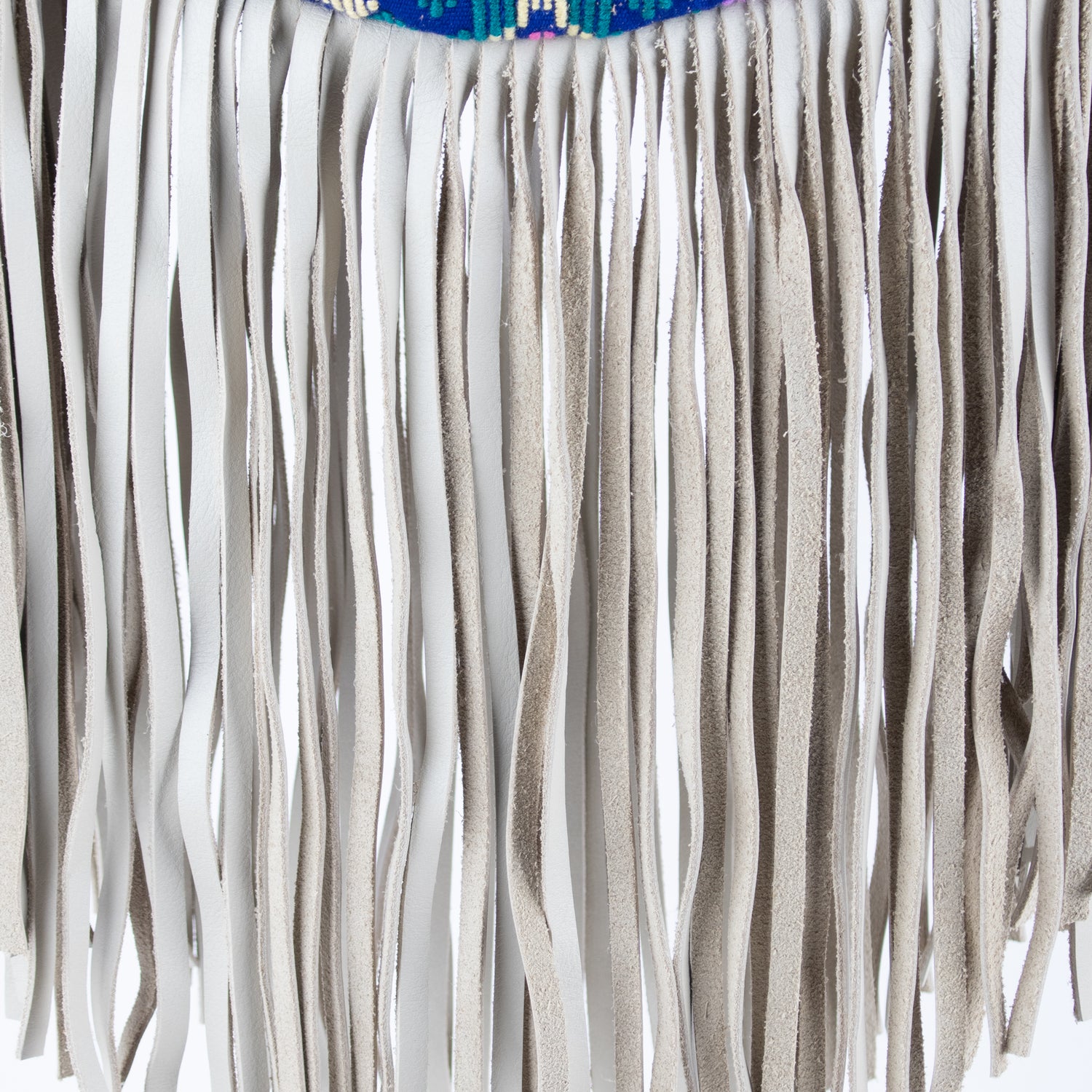 - Full grain leather fringe, base and strap