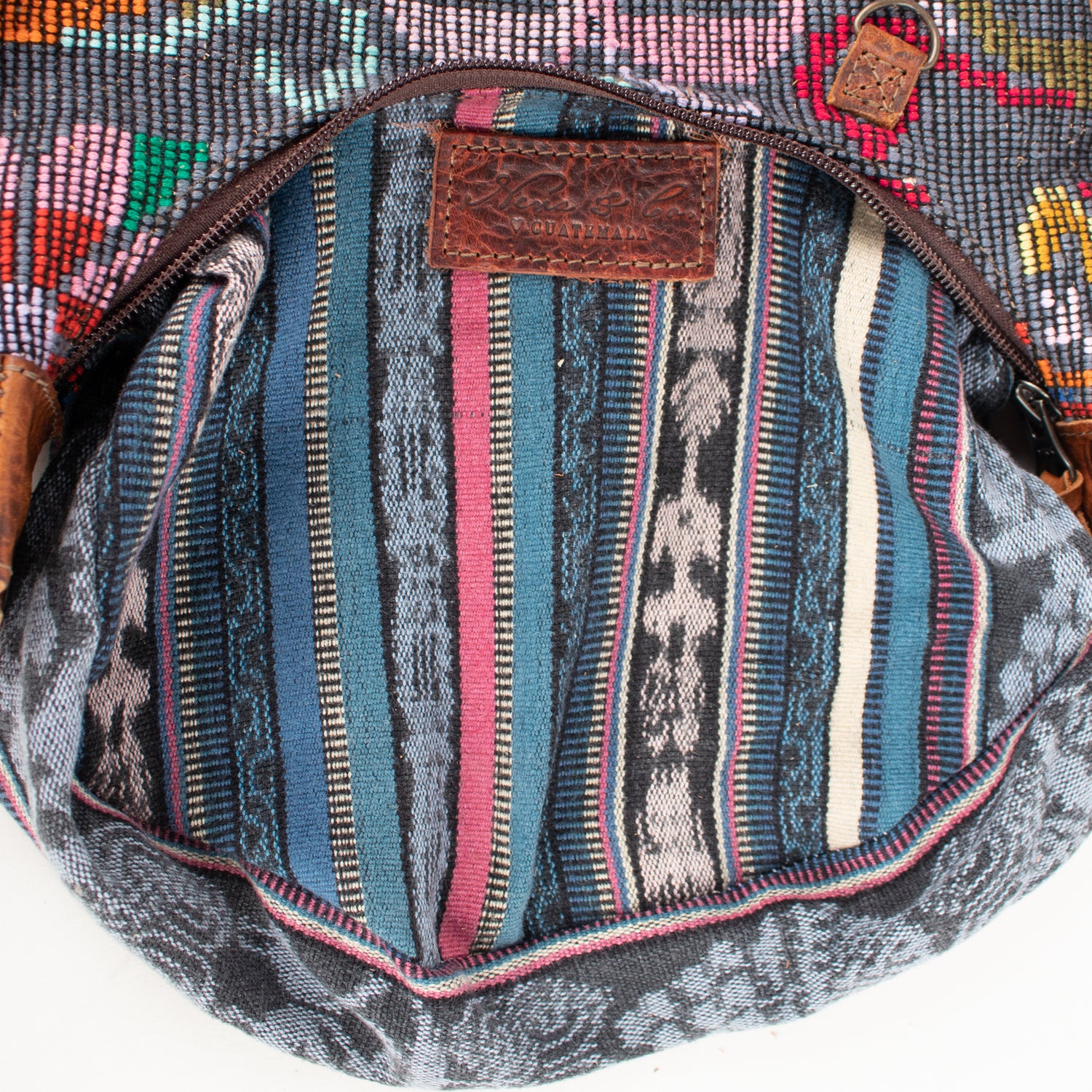 Many unique Maya symbols can be found in our One of a Kind Collection. The fabric we use for this collection is made from upcycled vintage huipiles (traditional attire worn by women in Guatemala) that were handwoven by Artisans up to 10 years ago, and they have lived a full life before being incorporated into your leather bag!