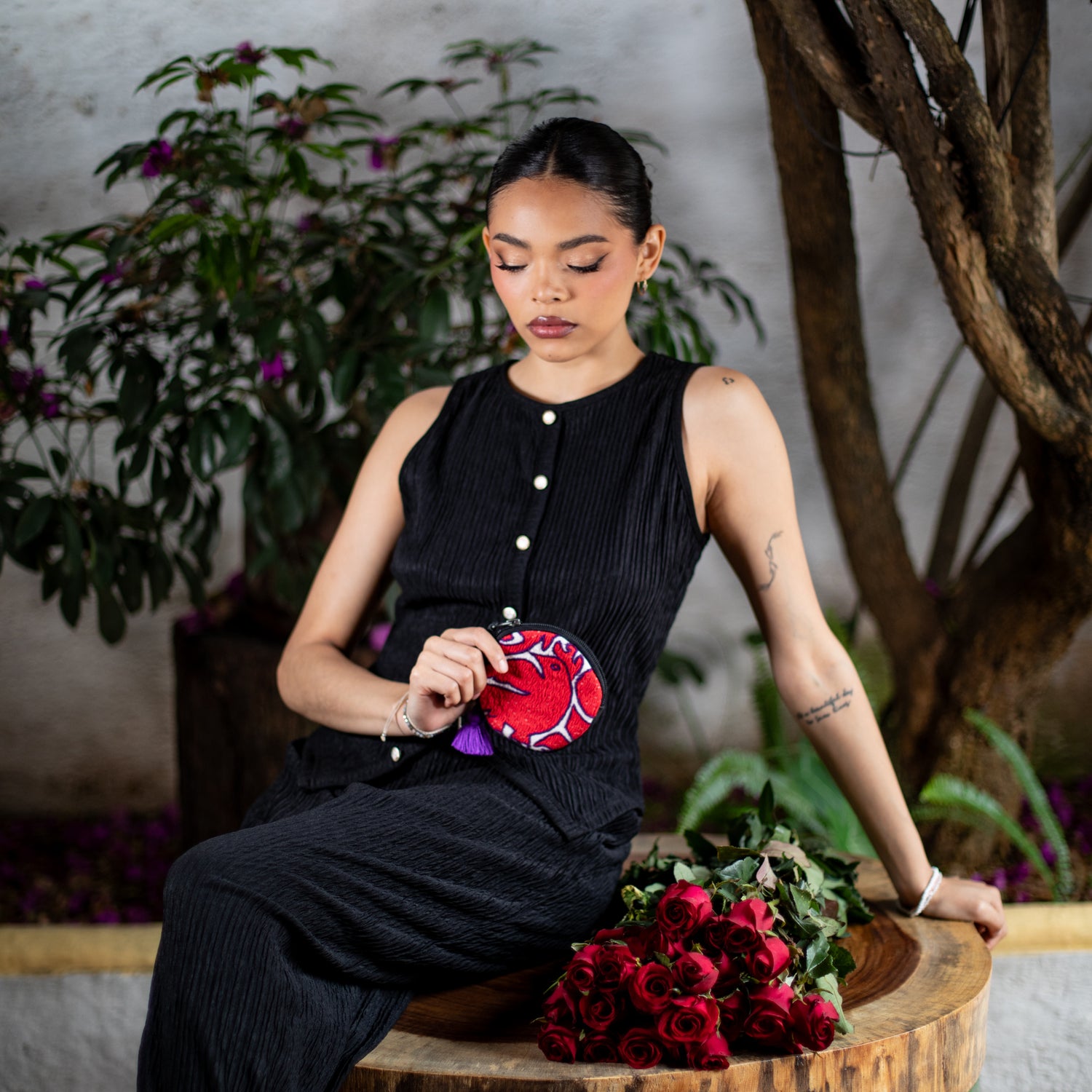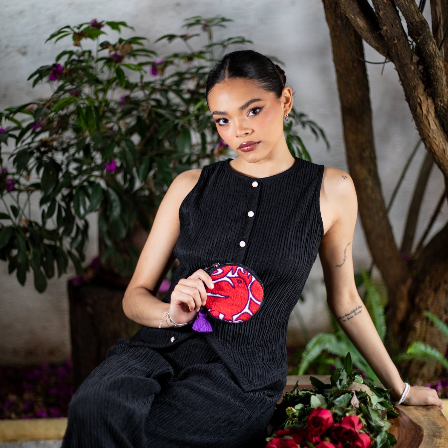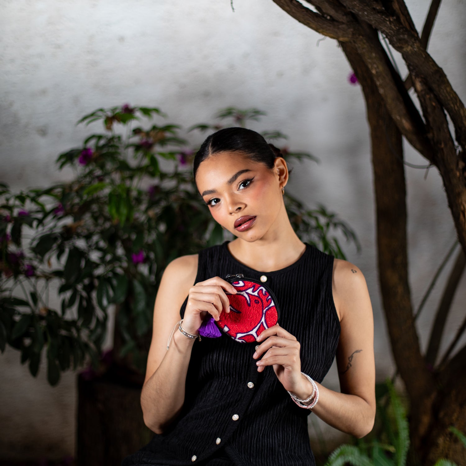 FANCY POUCH - OTOMÍ TEXTILE - BLACK - NO. 18205