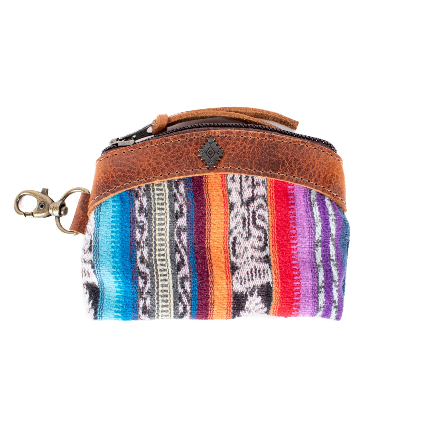 Many unique Maya symbols can be found in our One of a Kind Collection. The fabric we use for this collection is made from upcycled vintage huipiles (traditional attire worn by women in Guatemala) that were handwoven by Artisans up to 10 years ago, and they have lived a full life before being incorporated into your leather bag!