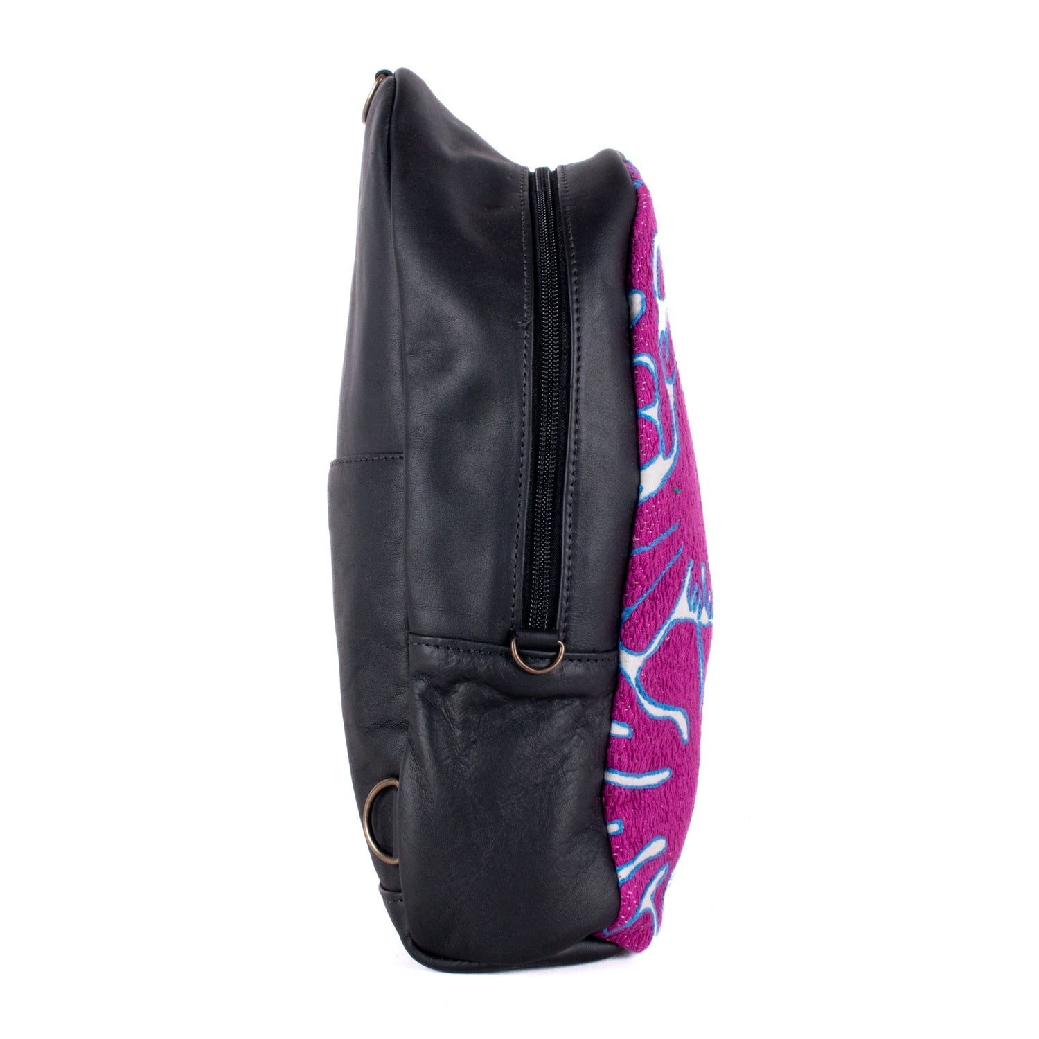Many unique Maya symbols can be found in our One of a Kind Collection. The fabric we use for this collection is made from upcycled vintage huipiles (traditional attire worn by women in Guatemala) that were handwoven by Artisans up to 10 years ago, and they have lived a full life before being incorporated into your leather bag!