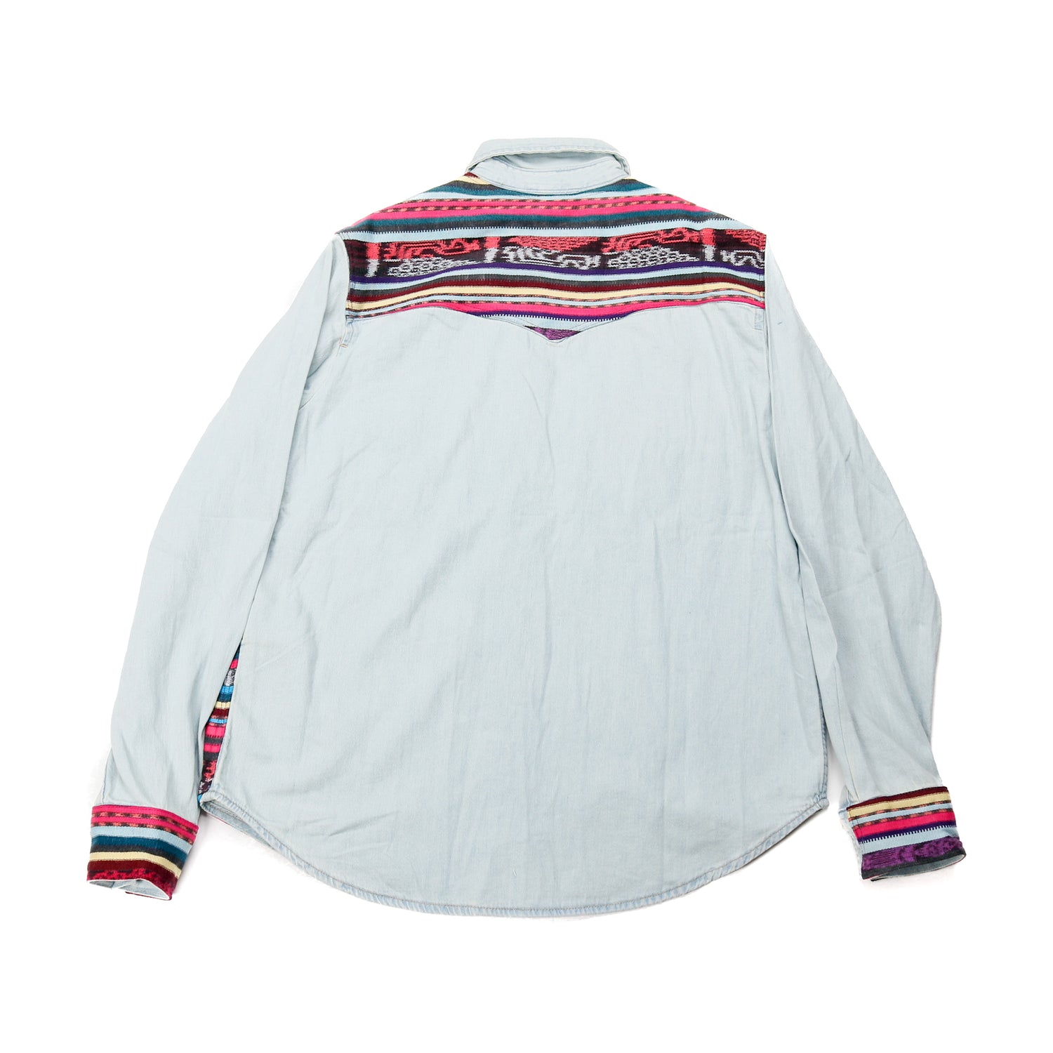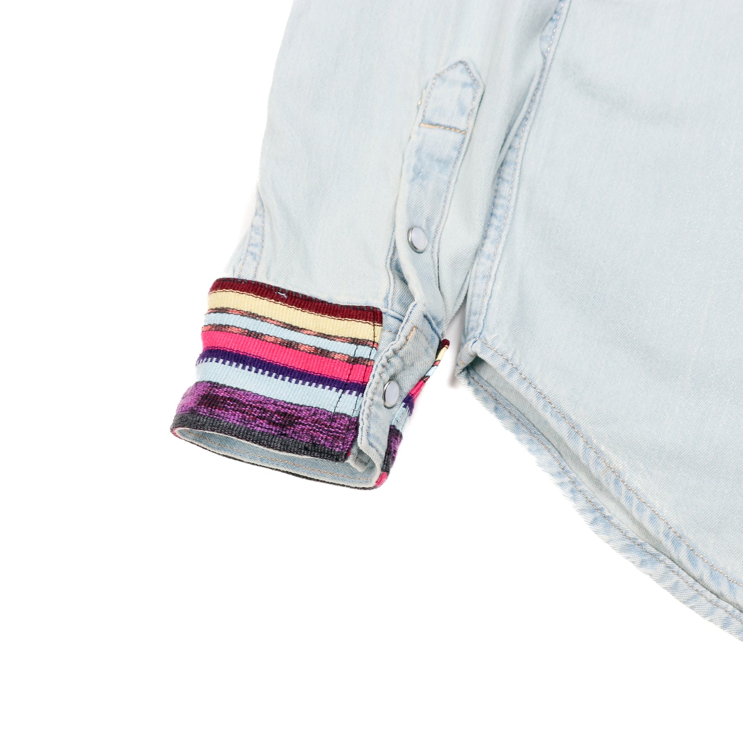 These brand new shirts are embellished with handwoven artisan fabrics. The fabric designs are inspired by the surrounding beauty of the highlands of Guatemala and are true one of a kind creations.