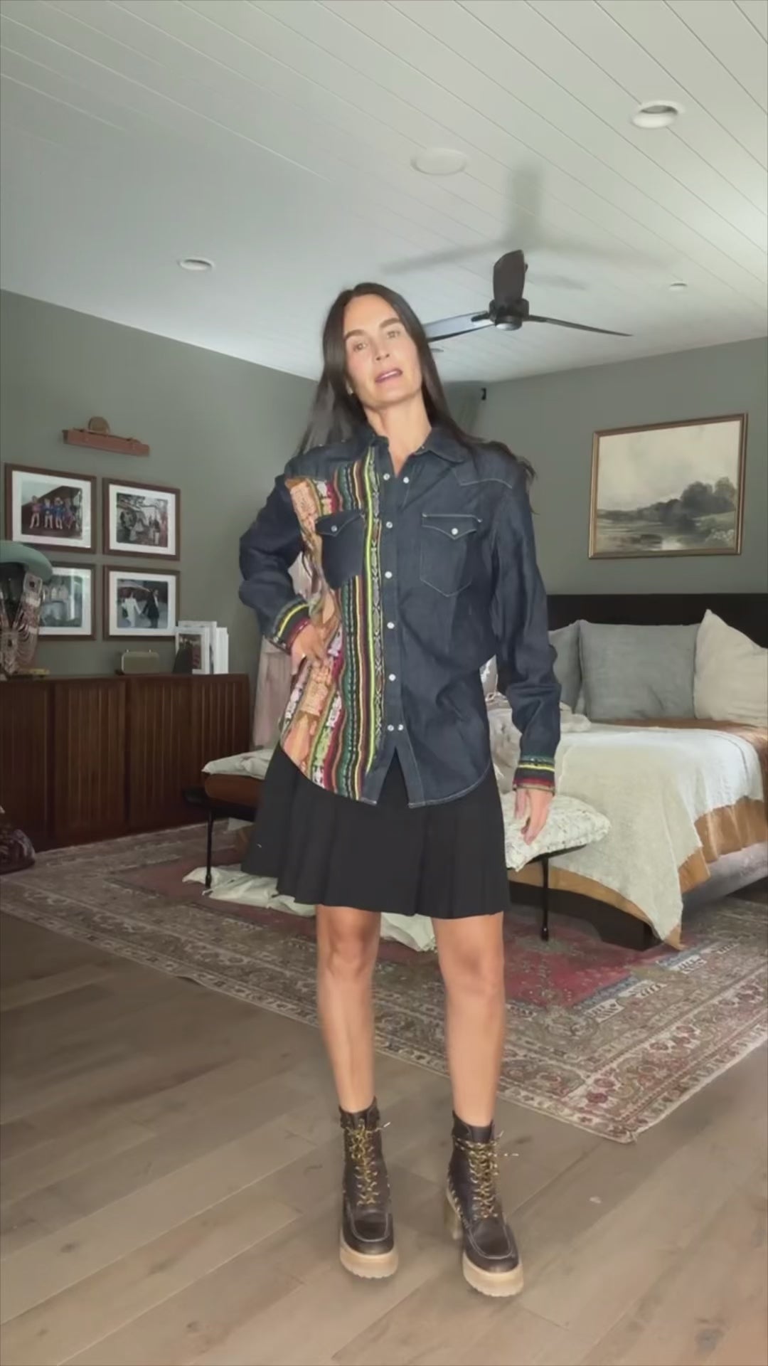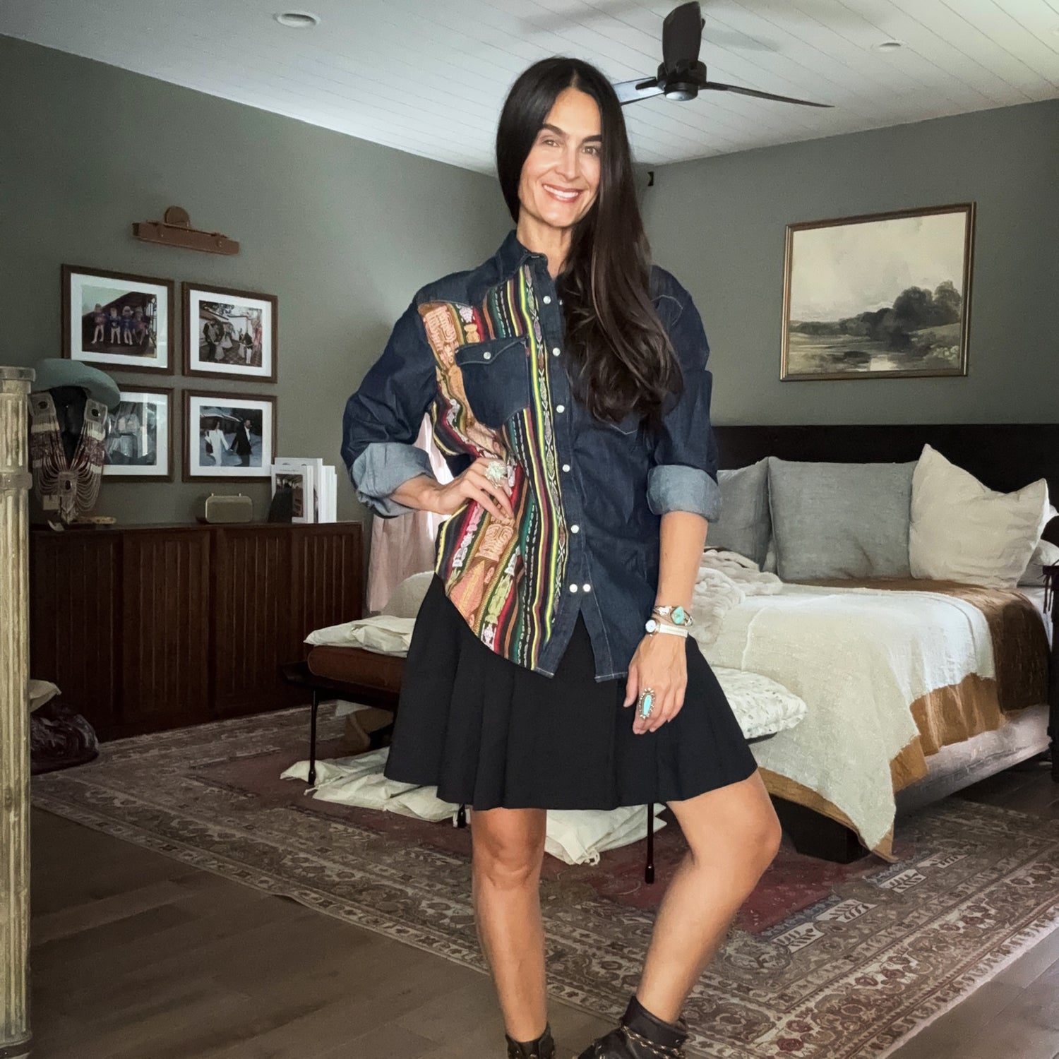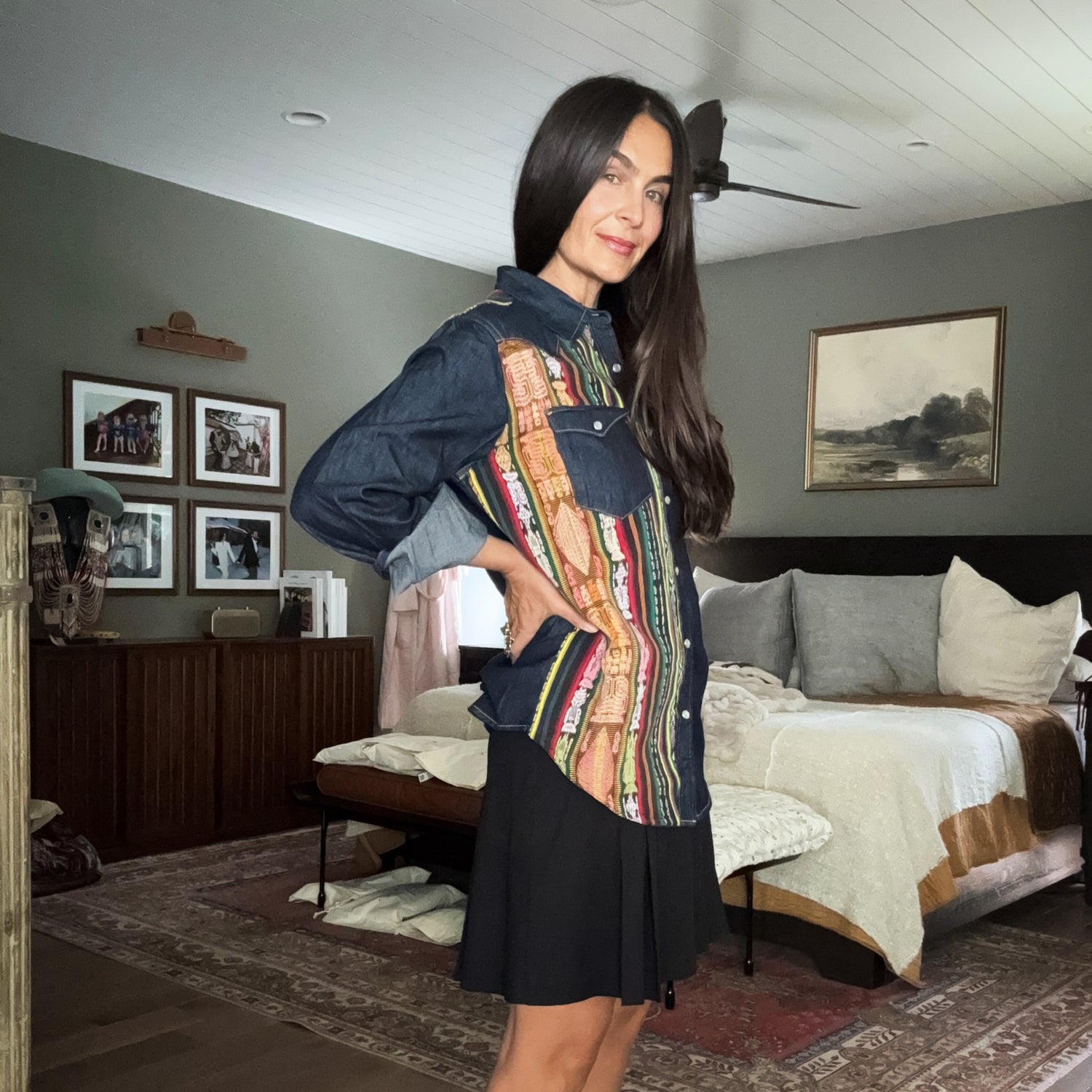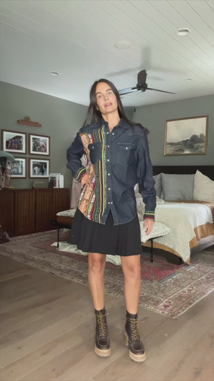 Denim shirt with artisan textile details - size m - no. 15346