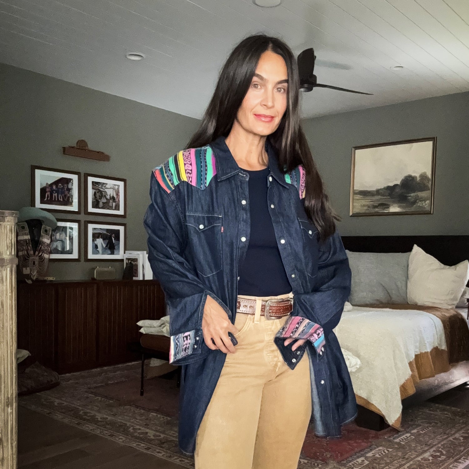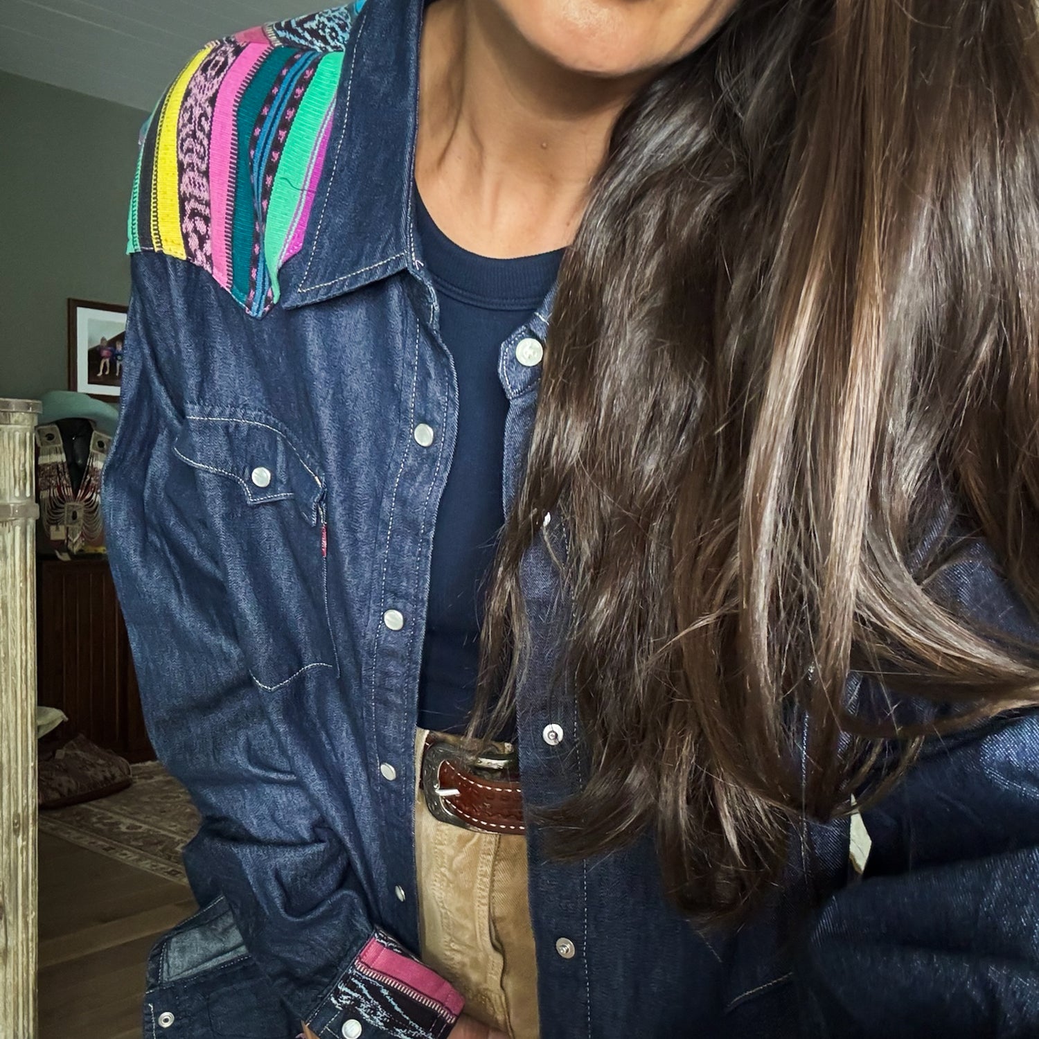 Denim shirt with artisan textile details - size xxl - no. 15357