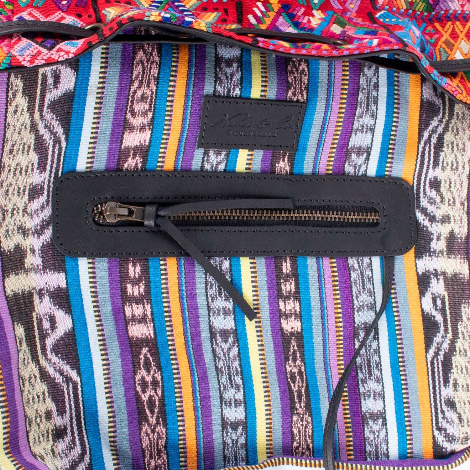 Many unique Maya symbols can be found in our One of a Kind Collection. The fabric we use for this collection is made from upcycled vintage huipiles (traditional attire worn by women in Guatemala) that were handwoven by Artisans up to 10 years ago, and they have lived a full life before being incorporated into your leather bag!