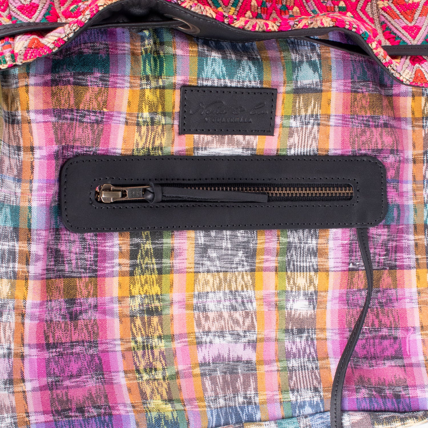 We make every effort to provide our customers with the best-handcrafted and high-quality bags. Please note that all our processes to make the bags are done by hand, from curing, cutting, and treating the leather to using up-cycled huipils. Our bags have natural characteristics and qualities that should not be considered as flaws or as damage because they do not interfere with the functionality of the bag. We up-cycle vintage Maya clothing to make beautiful one-of-a-kind products. Many times you will find snags in the pattern. This is normal. Should your patterned huipil snag you can snip the loose threads with scissors. Do not pull them.