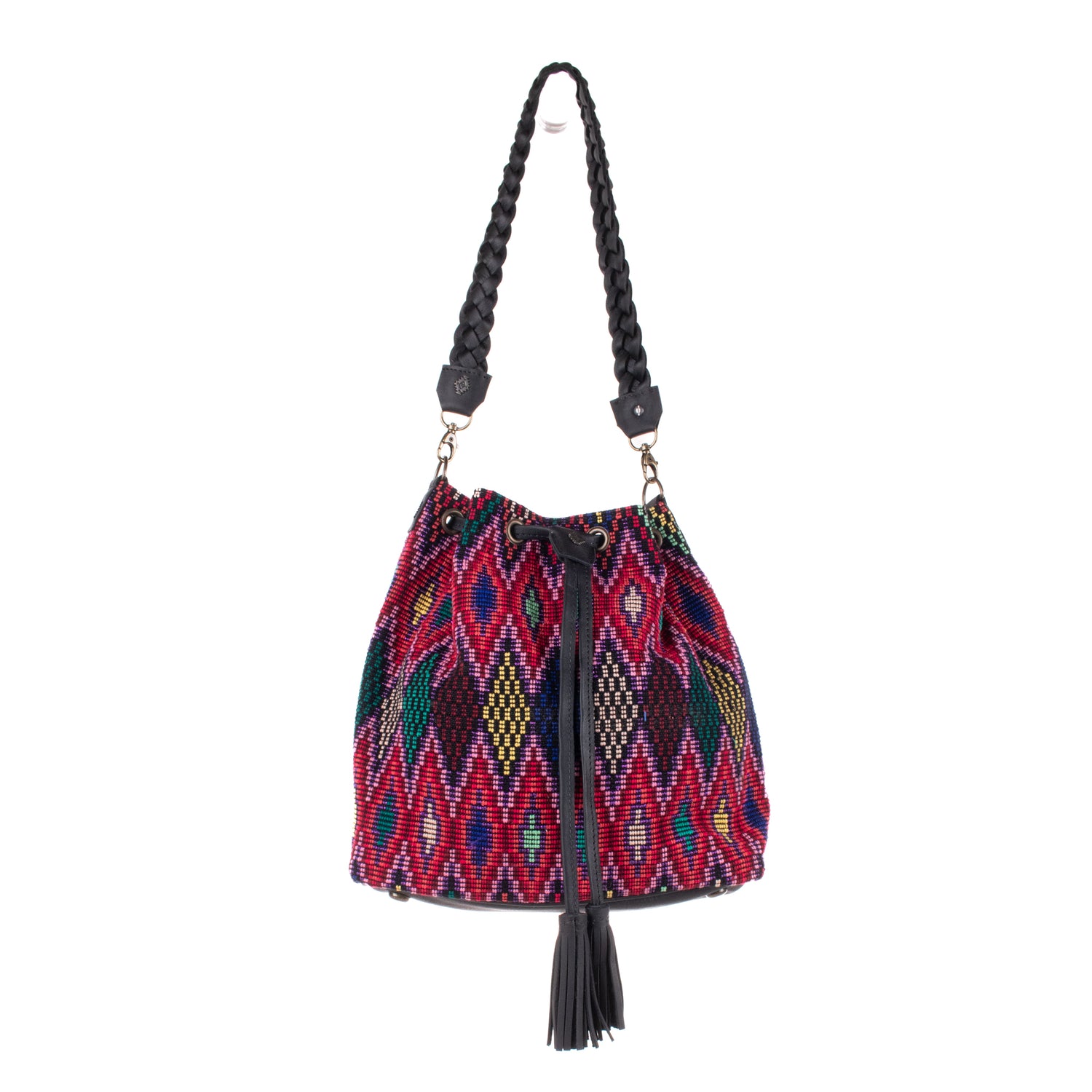 Drawstring bucket bag - ooak huipil - black - no. 19313