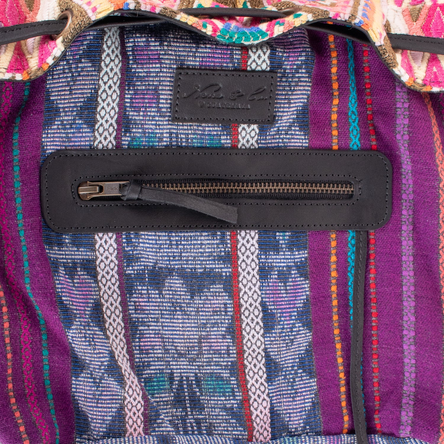 Many unique Maya symbols can be found in our One of a Kind Collection. The fabric we use for this collection is made from upcycled vintage huipiles (traditional attire worn by women in Guatemala) that were handwoven by Artisans up to 10 years ago, and they have lived a full life before being incorporated into your leather bag!