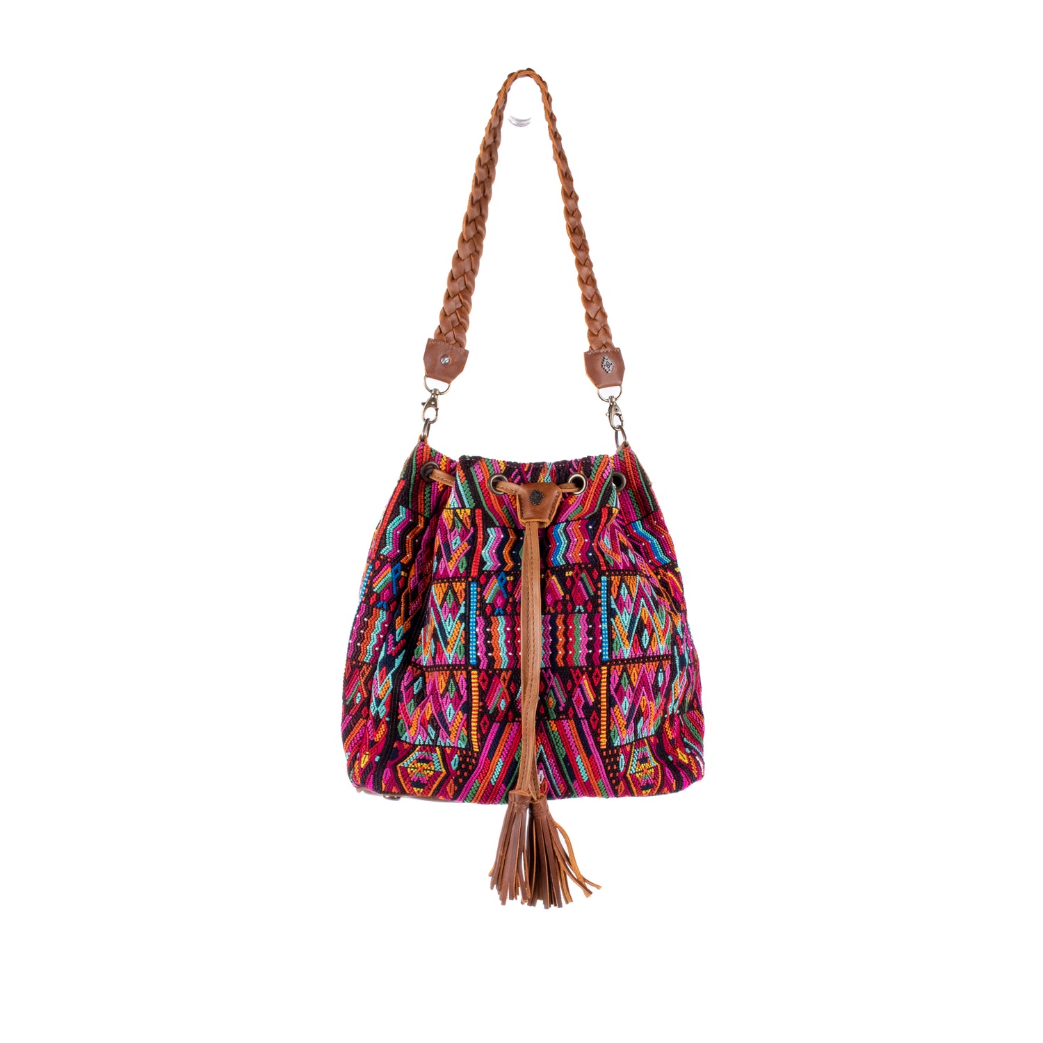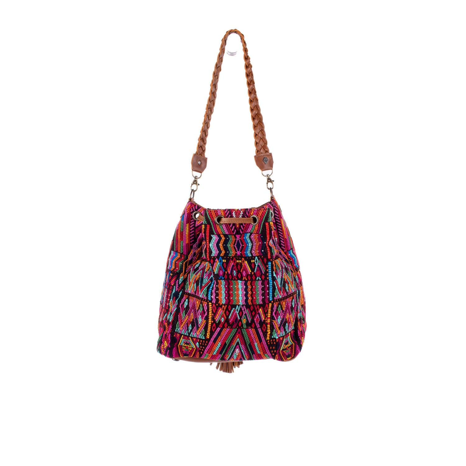 Drawstring bucket bag - ooak huipil - cafe - no. 17990
