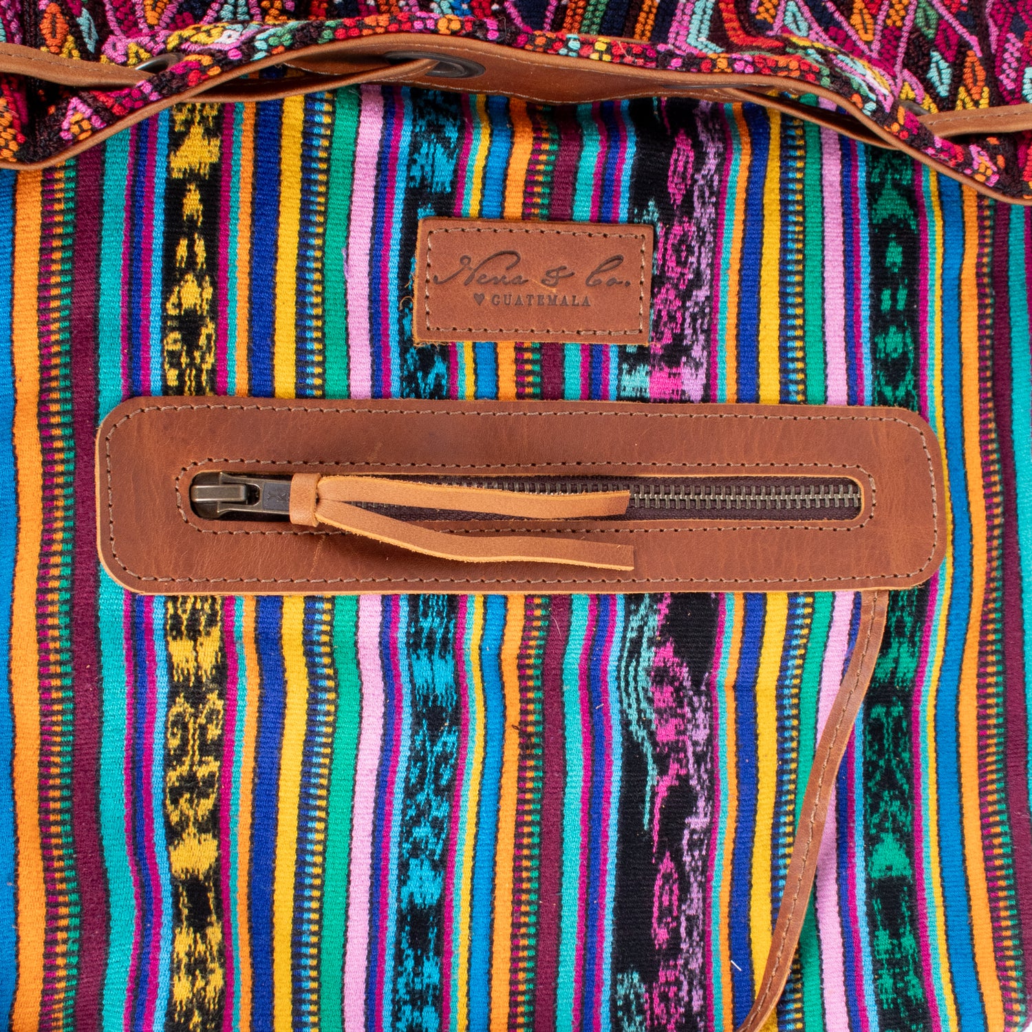 We make every effort to provide our customers with the best-handcrafted and high-quality bags. Please note that all our processes to make the bags are done by hand, from curing, cutting, and treating the leather to using up-cycled huipils. Our bags have natural characteristics and qualities that should not be considered as flaws or as damage because they do not interfere with the functionality of the bag. We up-cycle vintage Maya clothing to make beautiful one-of-a-kind products. Many times you will find snags in the pattern. This is normal. Should your patterned huipil snag you can snip the loose threads with scissors. Do not pull them.