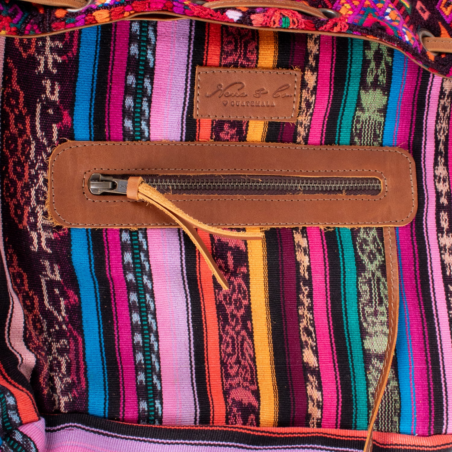 We make every effort to provide our customers with the best-handcrafted and high-quality bags. Please note that all our processes to make the bags are done by hand, from curing, cutting, and treating the leather to using up-cycled huipils. Our bags have natural characteristics and qualities that should not be considered as flaws or as damage because they do not interfere with the functionality of the bag. We up-cycle vintage Maya clothing to make beautiful one-of-a-kind products. Many times you will find snags in the pattern. This is normal. Should your patterned huipil snag you can snip the loose threads with scissors. Do not pull them.