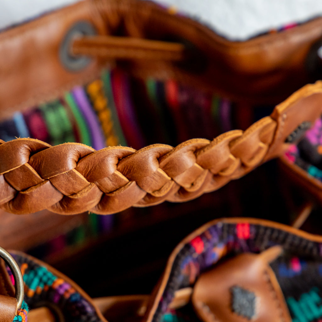 We make every effort to provide our customers with the best-handcrafted and high-quality bags. Please note that all our processes to make the bags are done by hand, from curing, cutting, and treating the leather to using up-cycled huipils. Our bags have natural characteristics and qualities that should not be considered as flaws or as damage because they do not interfere with the functionality of the bag. We up-cycle vintage Maya clothing to make beautiful one-of-a-kind products. Many times you will find snags in the pattern. This is normal. Should your patterned huipil snag you can snip the loose threads with scissors. Do not pull them.
