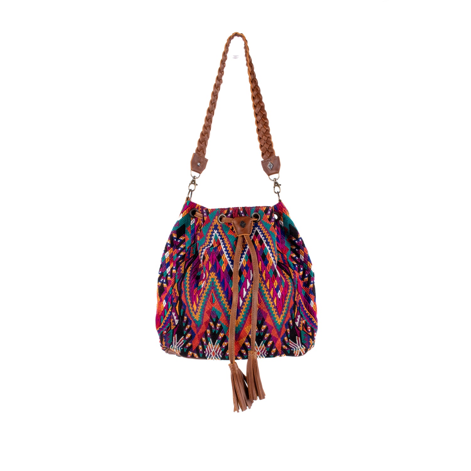 Drawstring bucket bag - ooak huipil - cafe - no. 17997