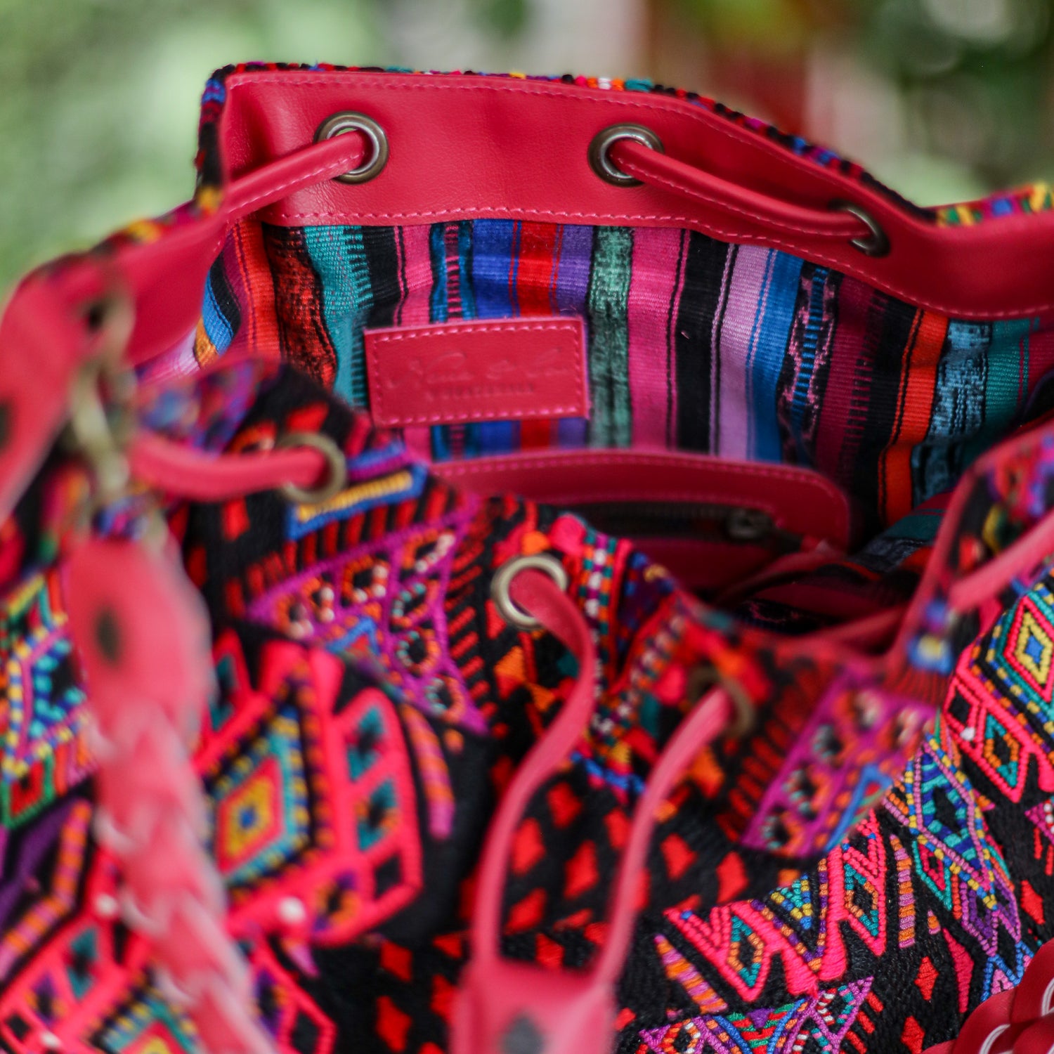 We make every effort to provide our customers with the best-handcrafted and high-quality bags. Please note that all our processes to make the bags are done by hand, from curing, cutting, and treating the leather to using up-cycled huipils. Our bags have natural characteristics and qualities that should not be considered as flaws or as damage because they do not interfere with the functionality of the bag. We up-cycle vintage Maya clothing to make beautiful one-of-a-kind products. Many times you will find snags in the pattern. This is normal. Should your patterned huipil snag you can snip the loose threads with scissors. Do not pull them.