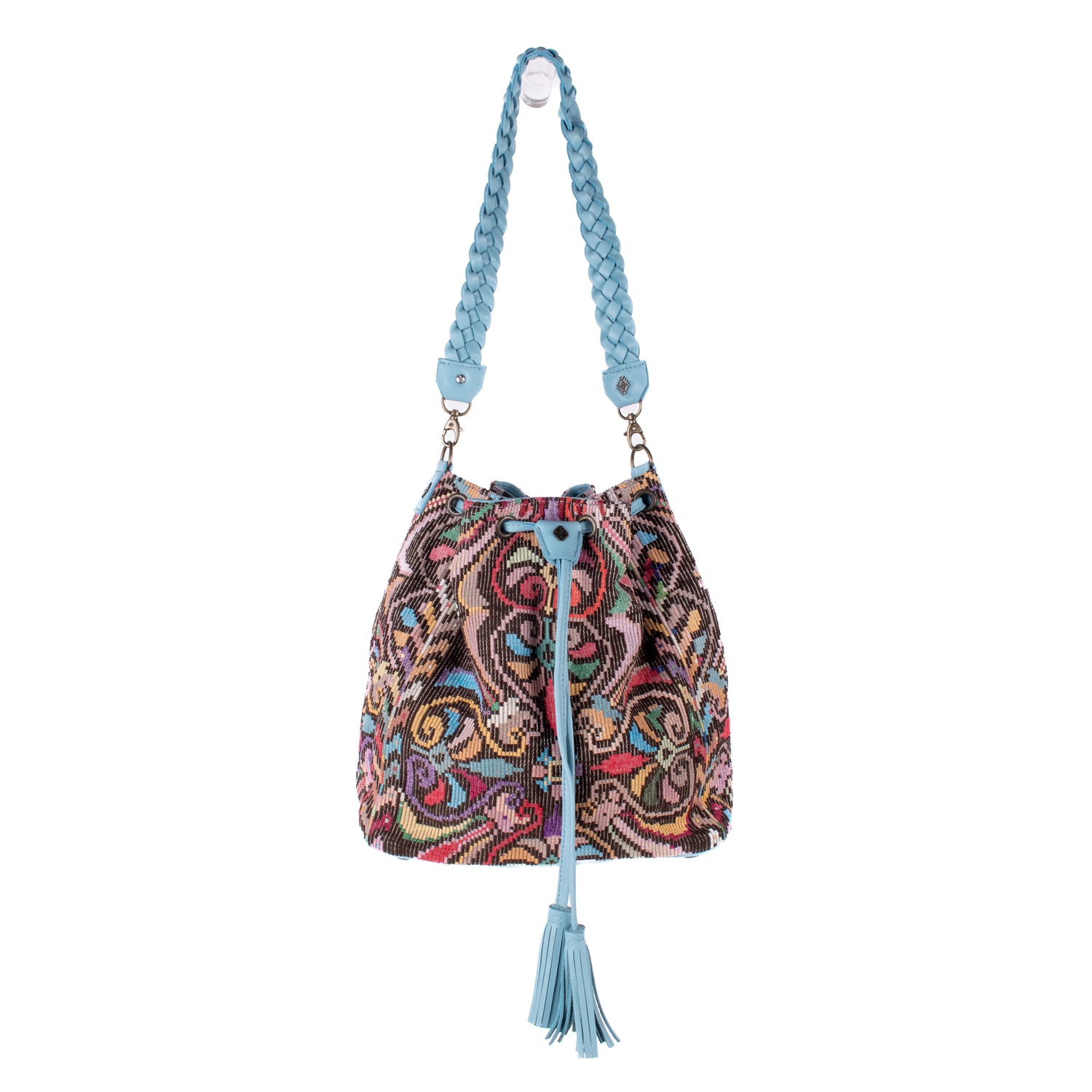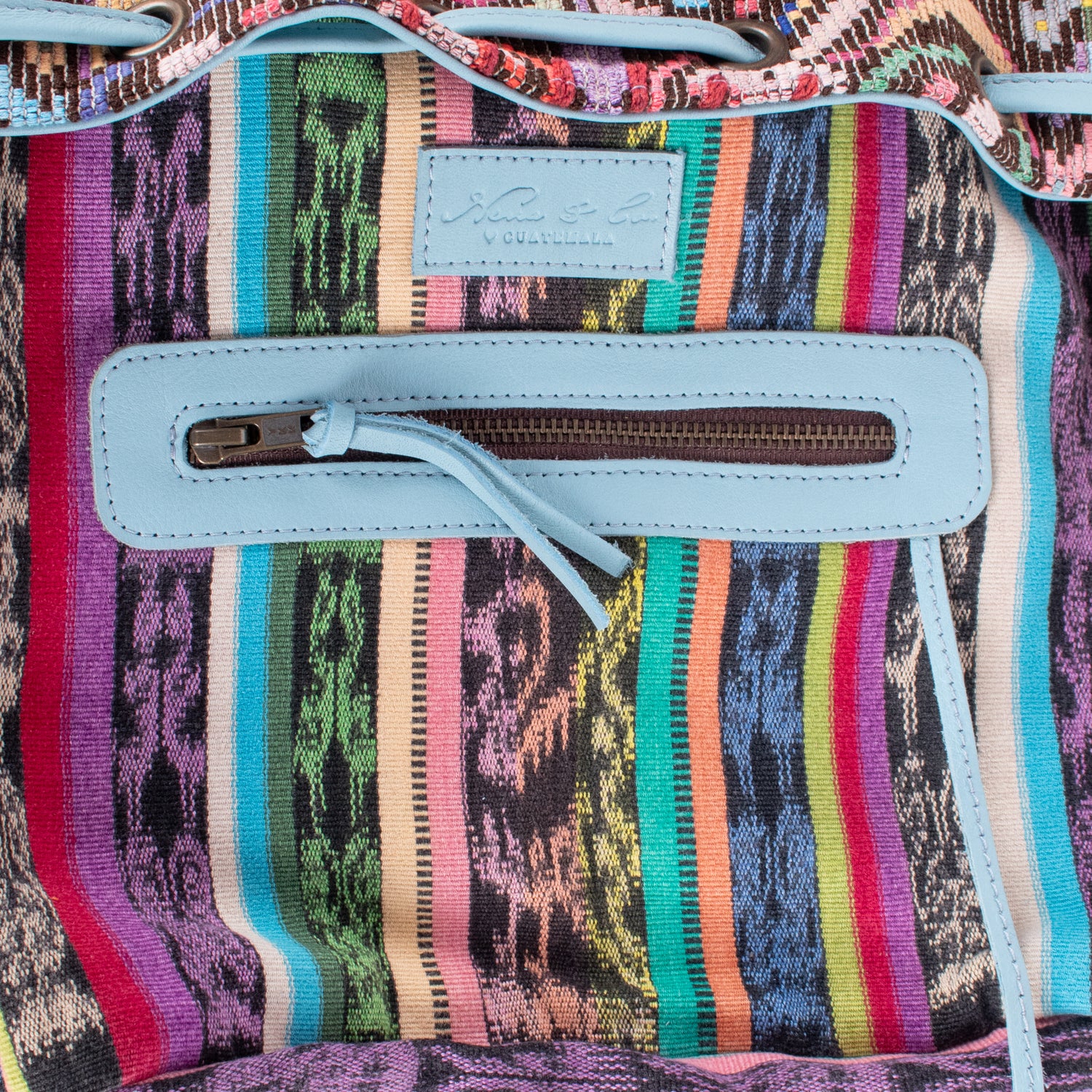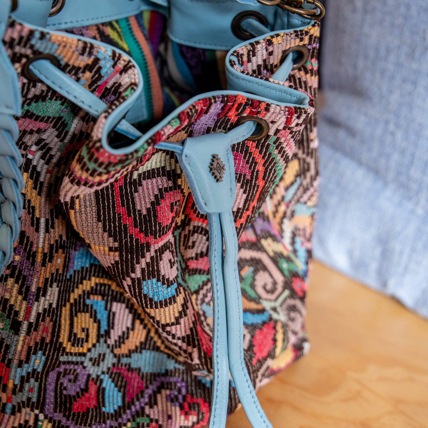 Drawstring bucket bag - ooak huipil - sky blue - no. 18025