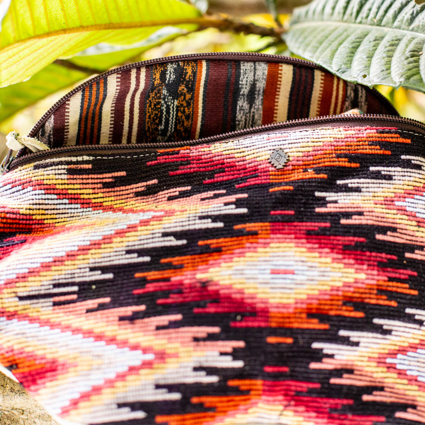 Our One Of A Kind Collection consists of products constructed using curated vintage fabrics purchased from loyal Guatemalan market vendors. All of the fabrics seen in the One Of A Kind Collection have lived a full life before being incorporated into your Nena product! These vintage fabrics were woven from the memory by a Guatemalan artisan up to 10 years ago; each pattern distinctive of the region where the artisan resides. Truly and completely one-of-a-kind, these products are a masterpiece!