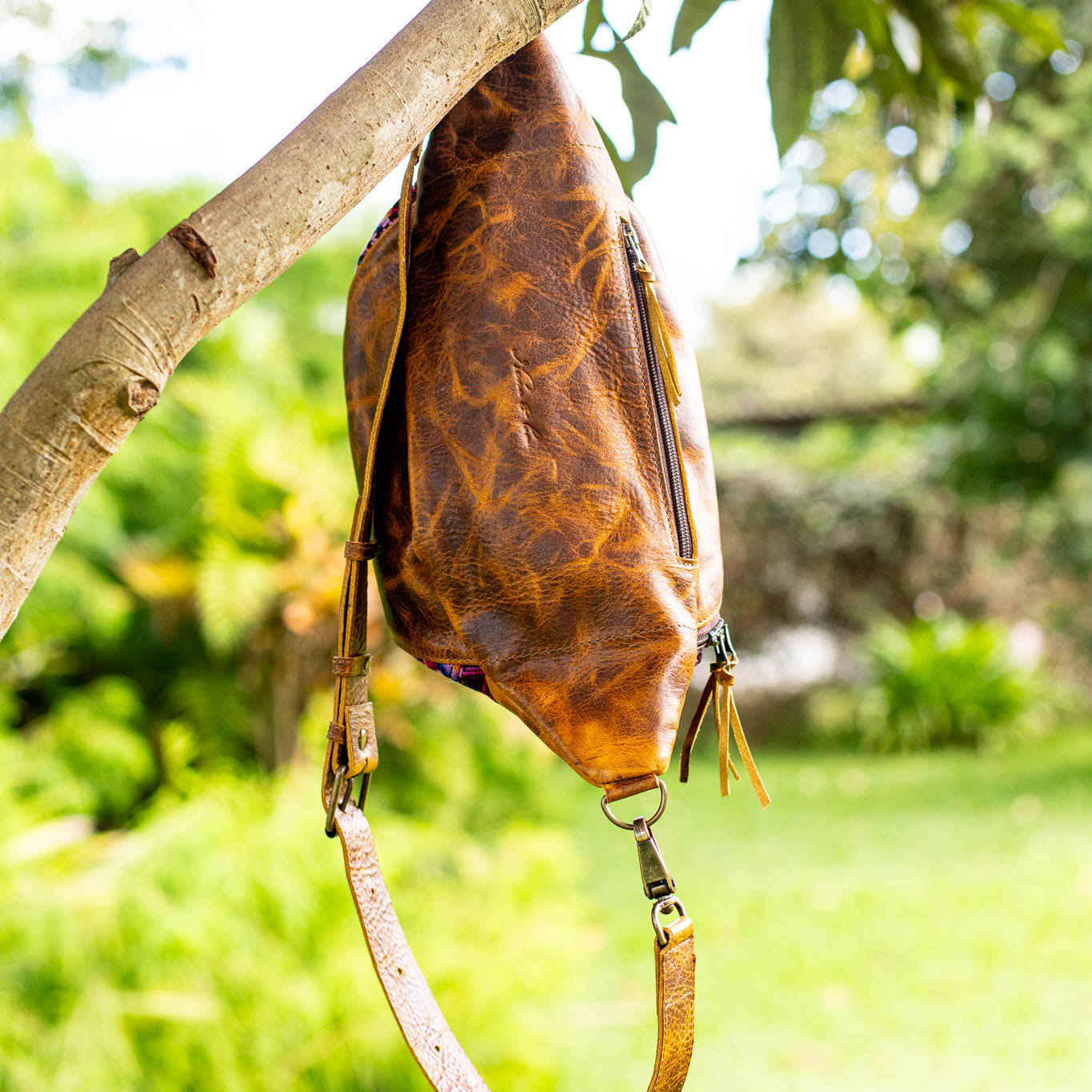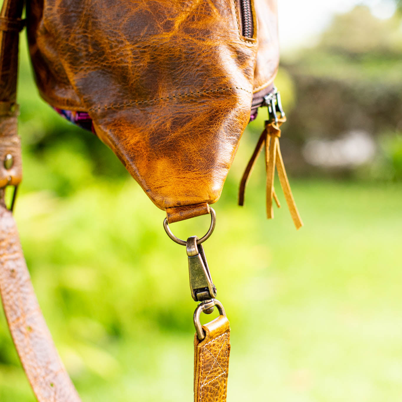 We make every effort to provide our customers with the best-handcrafted and high-quality bags. Please note that all our processes to make the bags are done by hand, from curing, cutting, and treating the leather to using up-cycled huipils. Our bags have natural characteristics and qualities that should not be considered as flaws or as damage because they do not interfere with the functionality of the bag. We up-cycle vintage Maya clothing to make beautiful one-of-a-kind products. Many times you will find snags in the pattern. This is normal. Should your patterned huipil snag you can snip the loose threads with scissors. Do not pull them.