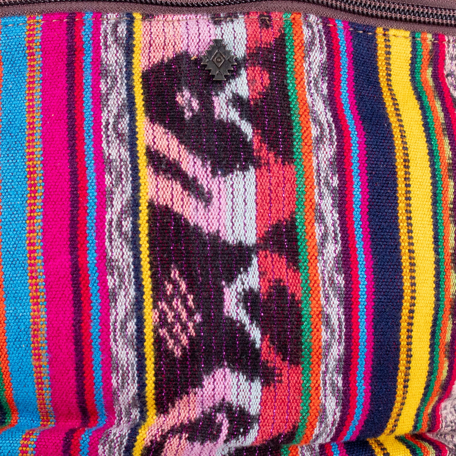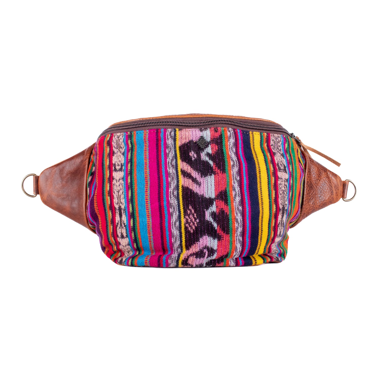 Many unique Maya symbols can be found in our One of a Kind Collection. The fabric we use for this collection is made from upcycled vintage huipiles (traditional attire worn by women in Guatemala) that were handwoven by Artisans up to 10 years ago, and they have lived a full life before being incorporated into your leather bag!