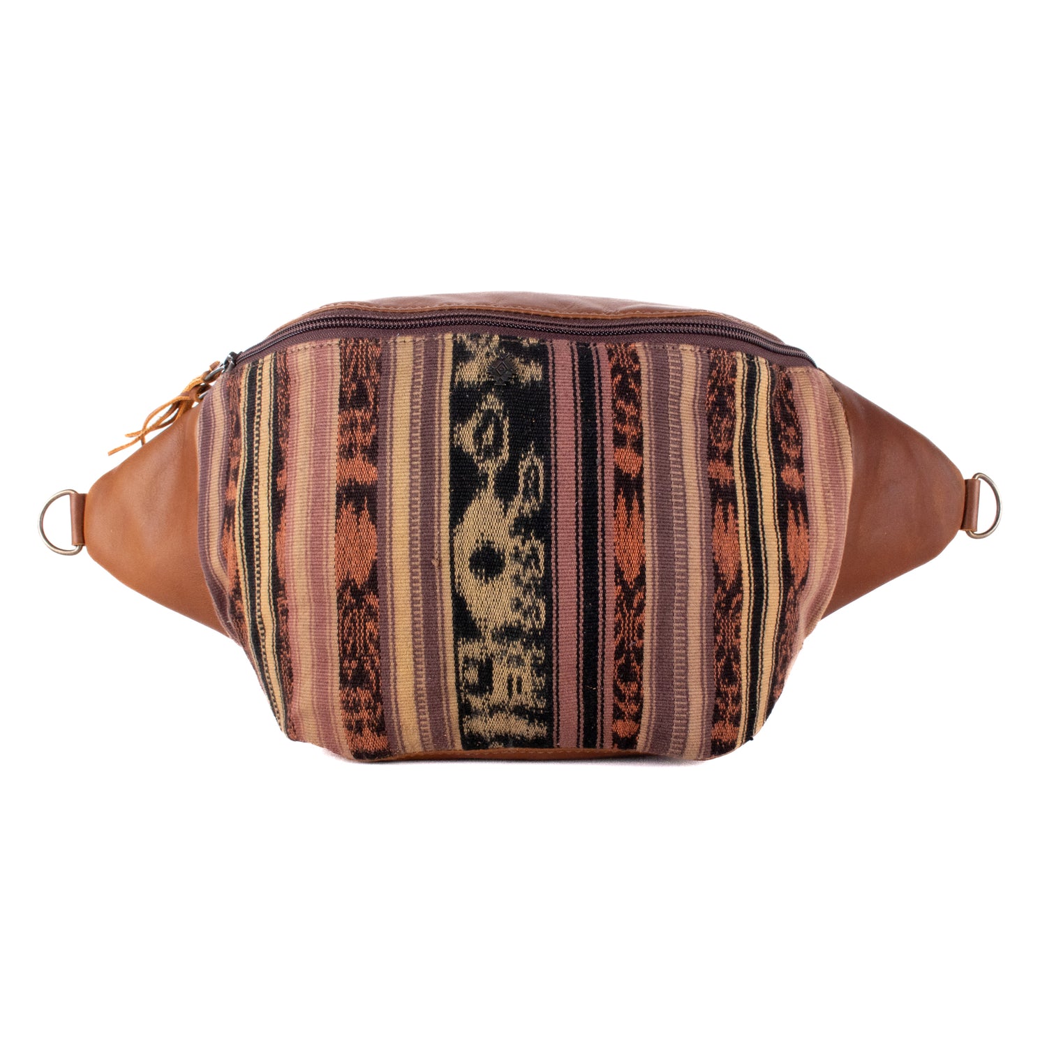 Many unique Maya symbols can be found in our One of a Kind Collection. The fabric we use for this collection is made from upcycled vintage huipiles (traditional attire worn by women in Guatemala) that were handwoven by Artisans up to 10 years ago, and they have lived a full life before being incorporated into your leather bag!