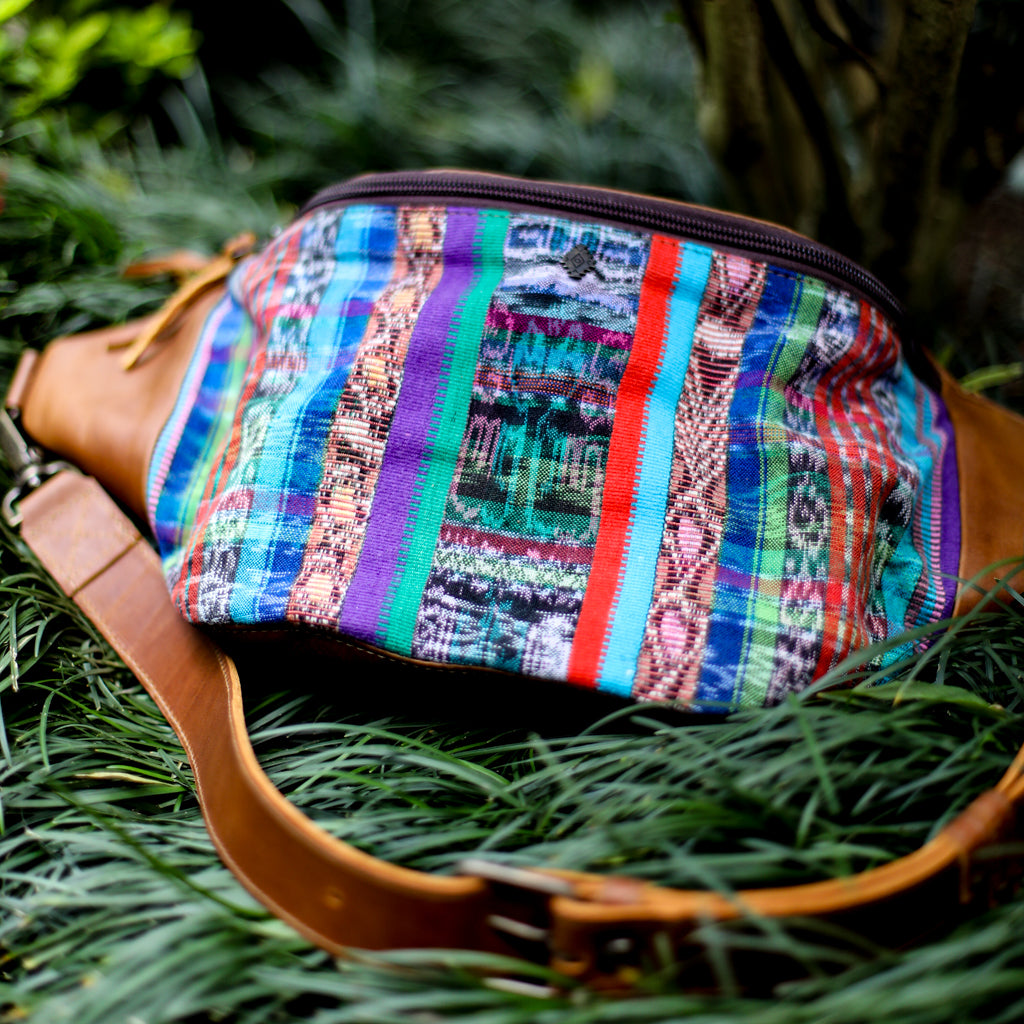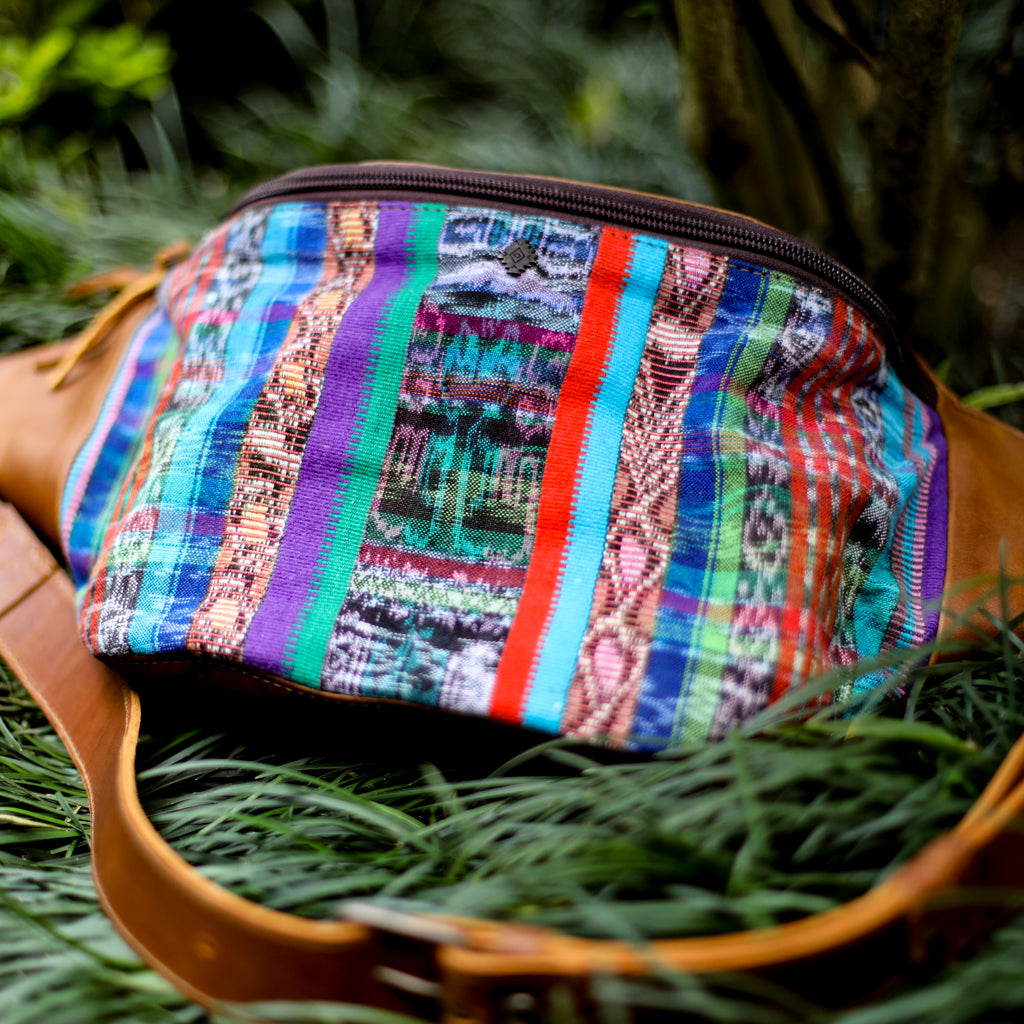 Many unique Maya symbols can be found in our One of a Kind Collection. The fabric we use for this collection is made from upcycled vintage huipiles (traditional attire worn by women in Guatemala) that were handwoven by Artisans up to 10 years ago, and they have lived a full life before being incorporated into your leather bag!