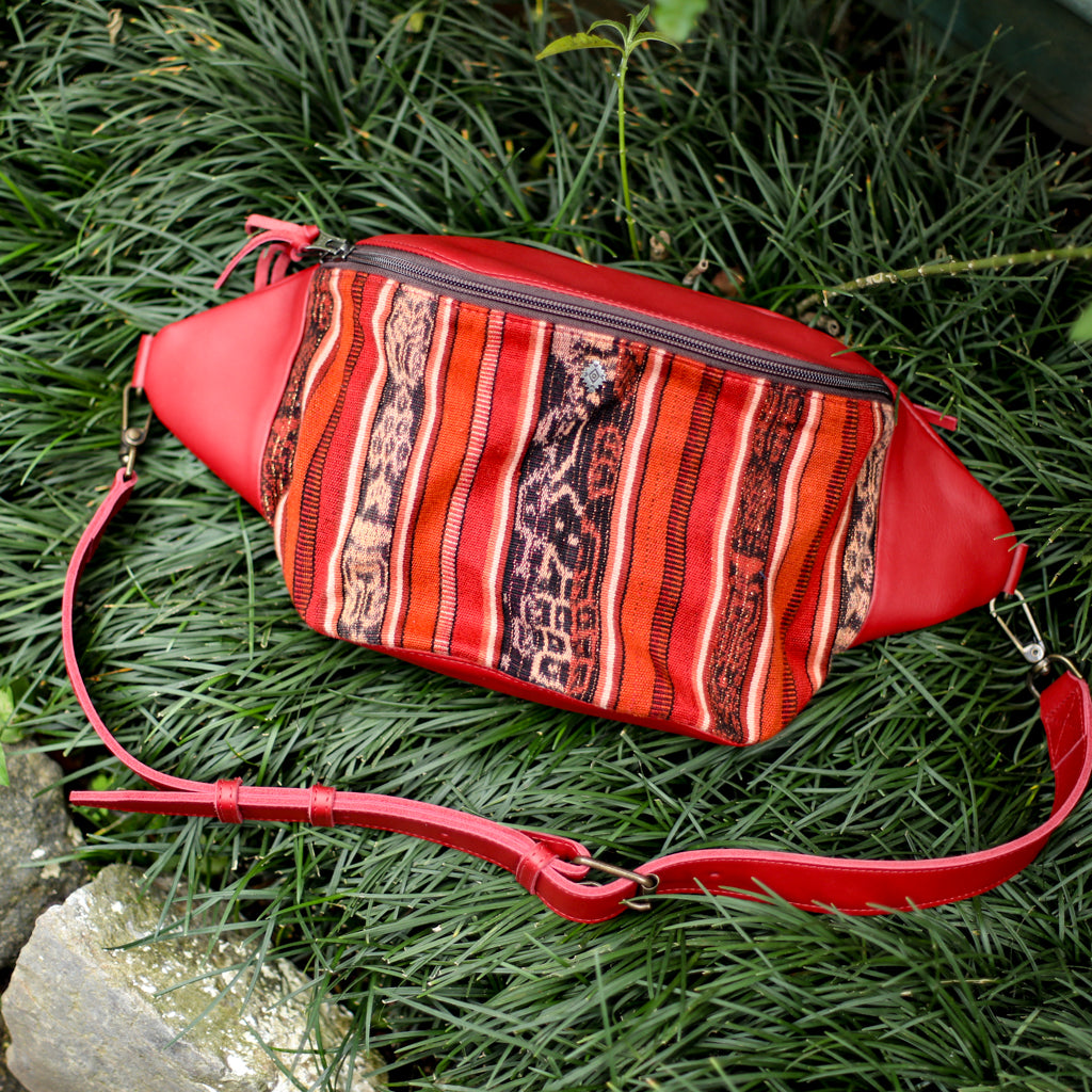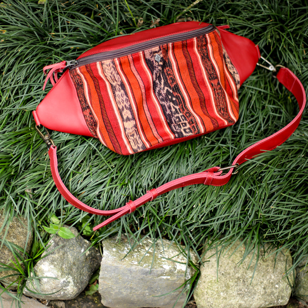 Many unique Maya symbols can be found in our One of a Kind Collection. The fabric we use for this collection is made from upcycled vintage huipiles (traditional attire worn by women in Guatemala) that were handwoven by Artisans up to 10 years ago, and they have lived a full life before being incorporated into your leather bag!