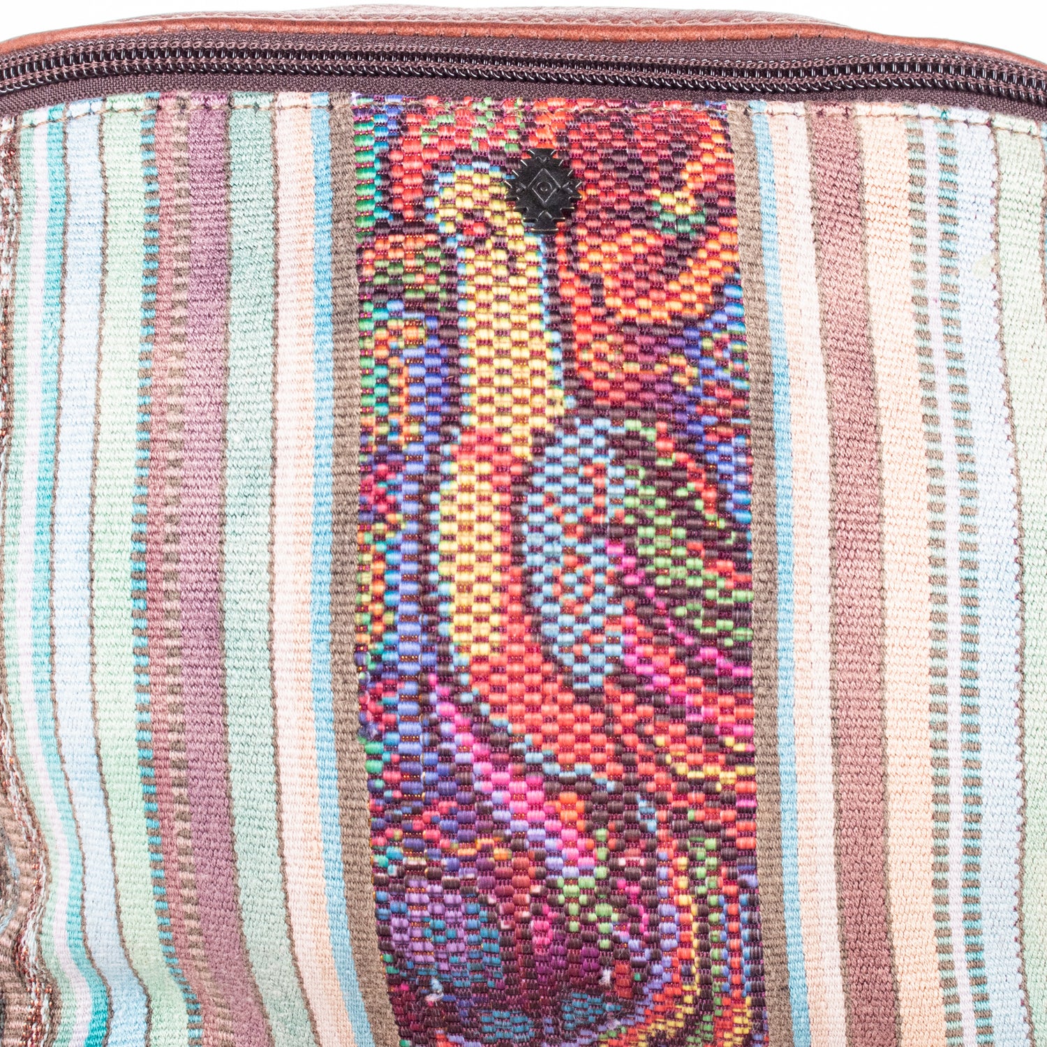 Many unique Maya symbols can be found in our One of a Kind Collection. The fabric we use for this collection is made from upcycled vintage huipiles (traditional attire worn by women in Guatemala) that were handwoven by Artisans up to 10 years ago, and they have lived a full life before being incorporated into your leather bag!
