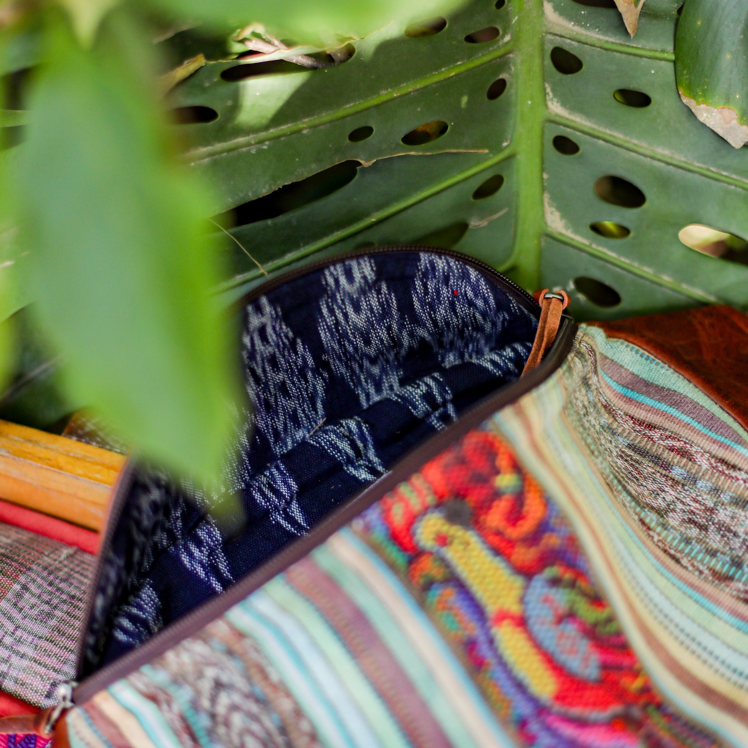 We make every effort to provide our customers with the best-handcrafted and high-quality bags. Please note that all our processes to make the bags are done by hand, from curing, cutting, and treating the leather to using up-cycled huipils. Our bags have natural characteristics and qualities that should not be considered as flaws or as damage because they do not interfere with the functionality of the bag. We up-cycle vintage Maya clothing to make beautiful one-of-a-kind products. Many times you will find snags in the pattern. This is normal. Should your patterned huipil snag you can snip the loose threads with scissors. Do not pull them.